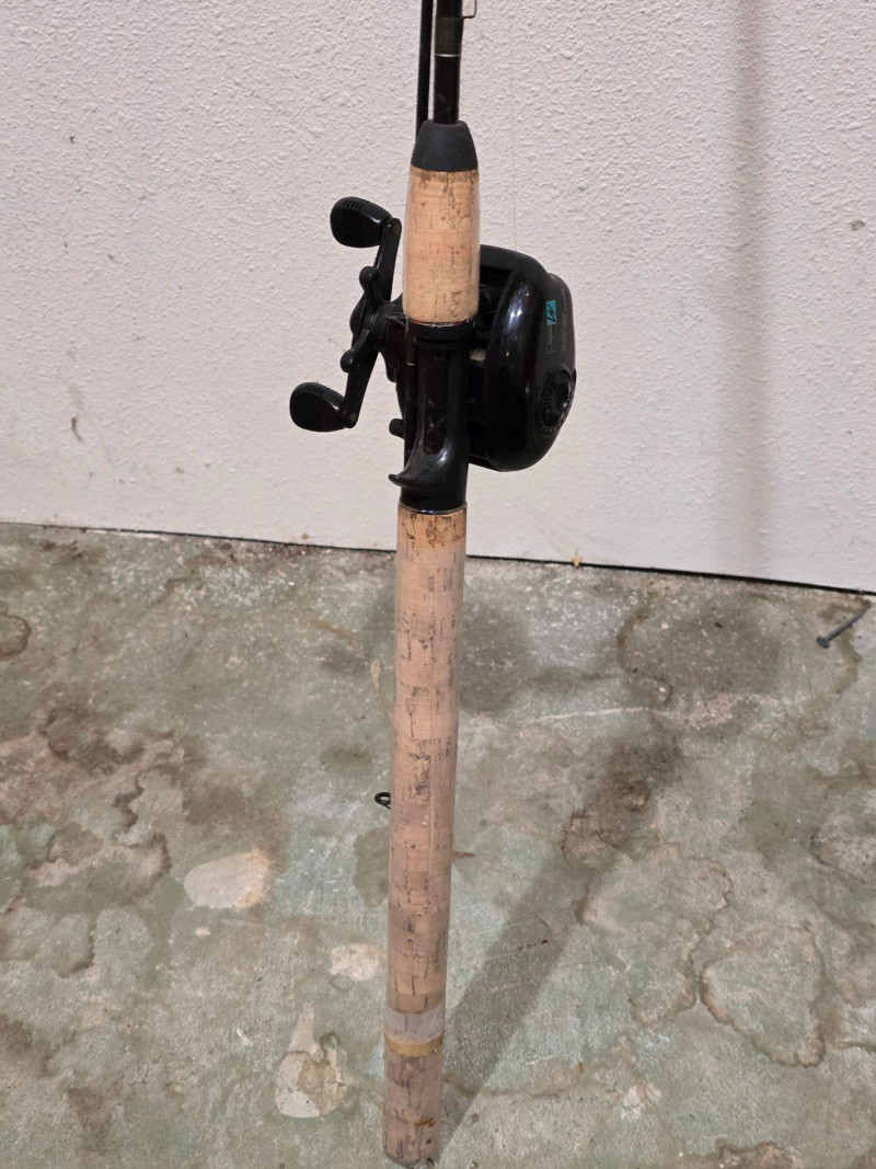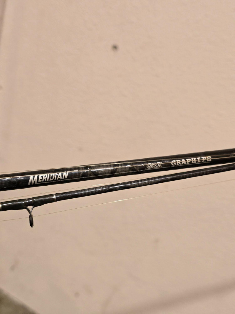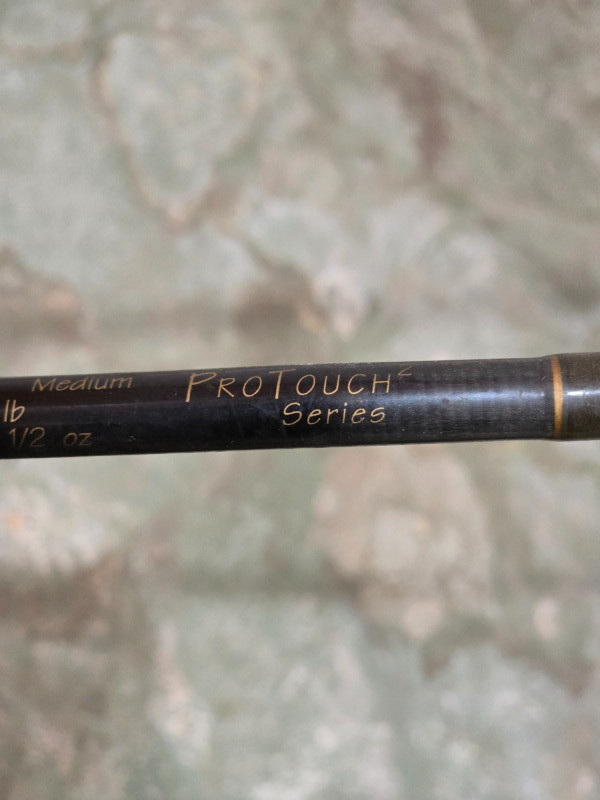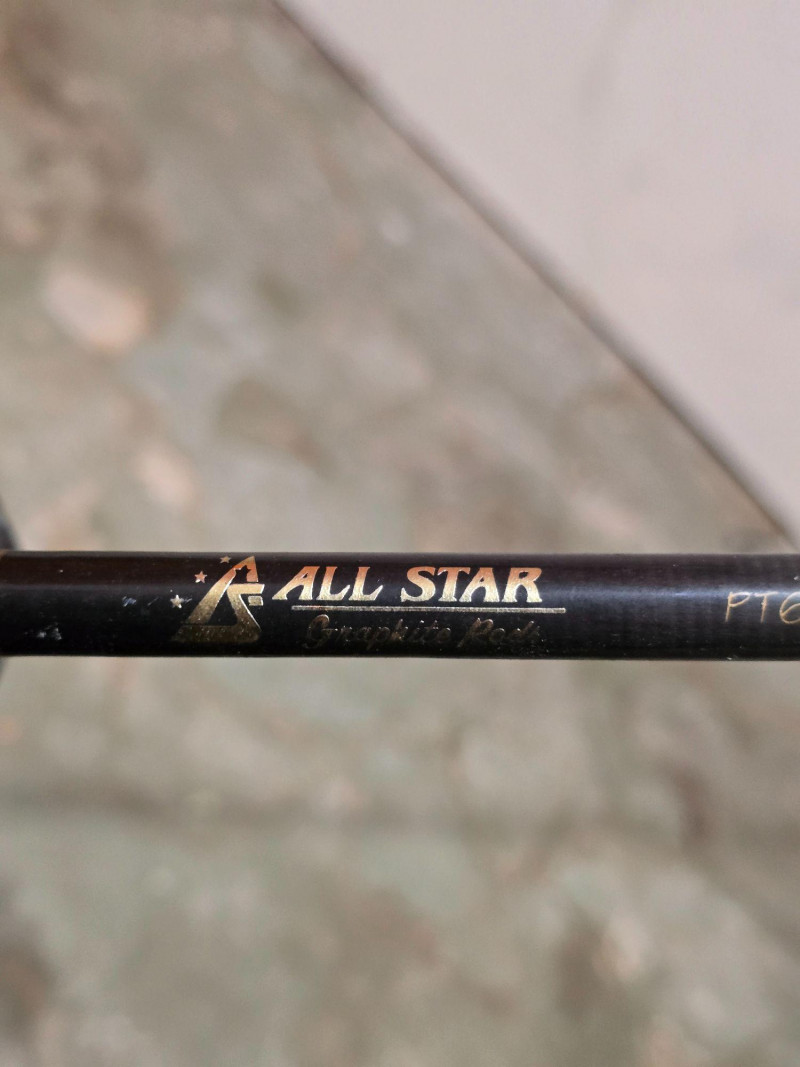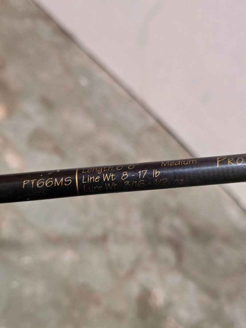 Group of three mixed fishing rods featuring visible branding from Tidewater 30LCL, Marado Solar100, Meridian GRX, and All Star PT66MS ProTouch Series. Assorted styles suitable for a range of freshwater and saltwater applications. Rods show use from regular handling and storage. A practical multi‑rod bundle for anglers seeking backup gear, project pieces, or additional setups for varied conditions. The Tidewater and Marado rods present as classic utility builds, while the Meridian and All Star models reflect lighter, more responsive designs. Grips, guides, and reel seats show wear consistent with age. No rods have been tested for performance. Sold as found. Condition: