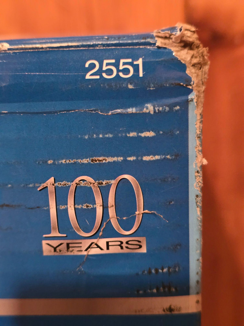 Fan is new and unused. Box has visible wear from storage.