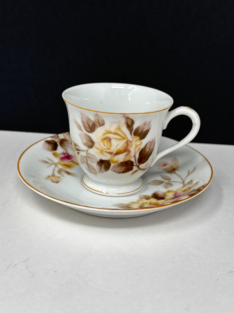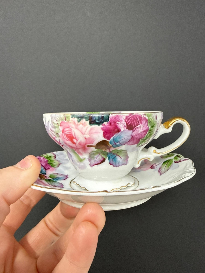 A charming 8-piece assembly (4 cups and 4 matching saucers) featuring a variety of elegant floral and gilded designs. This collection spans several continents and styles, ranging from delicate Japanese porcelain to classic English bone china. These pieces are perfect for a mismatched tea party set, "grandmillennial" decor, or as a foundational collection for a new hobbyist. There will be four total lots of these style of teacups in this auction. Good vintage/antique condition. Wear is typical for age.