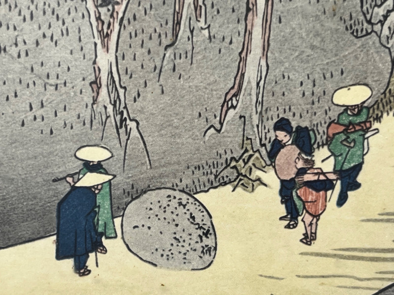 Lot # 14 - Japanese Woodblock Landscape Print – Okazaka Station, Tōkaidō Series