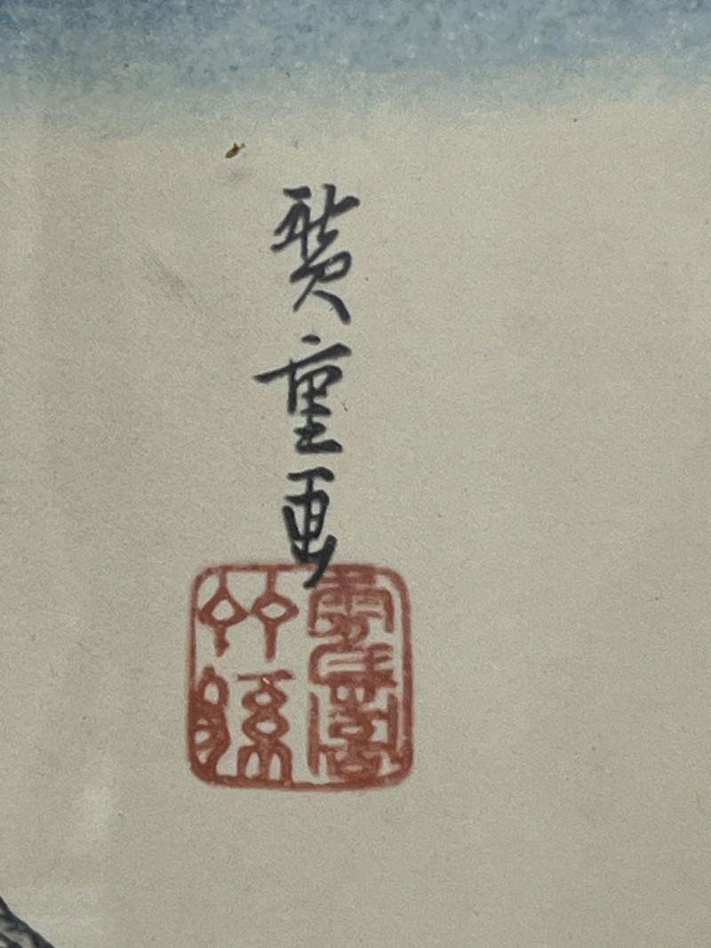 Print shows even coloration and good detail retention. Frame and matting appear stable with typical signs of handling. No major flaws observed in the artwork surface based on provided images. Notes
