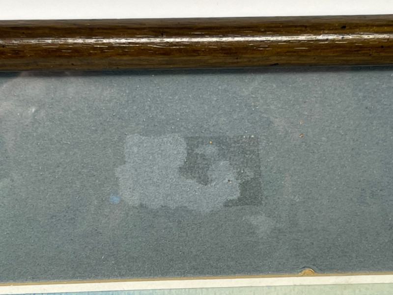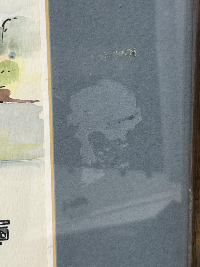 Artwork presents well. The matting shows visible wear marks. Frame has light surface wear consistent with age.