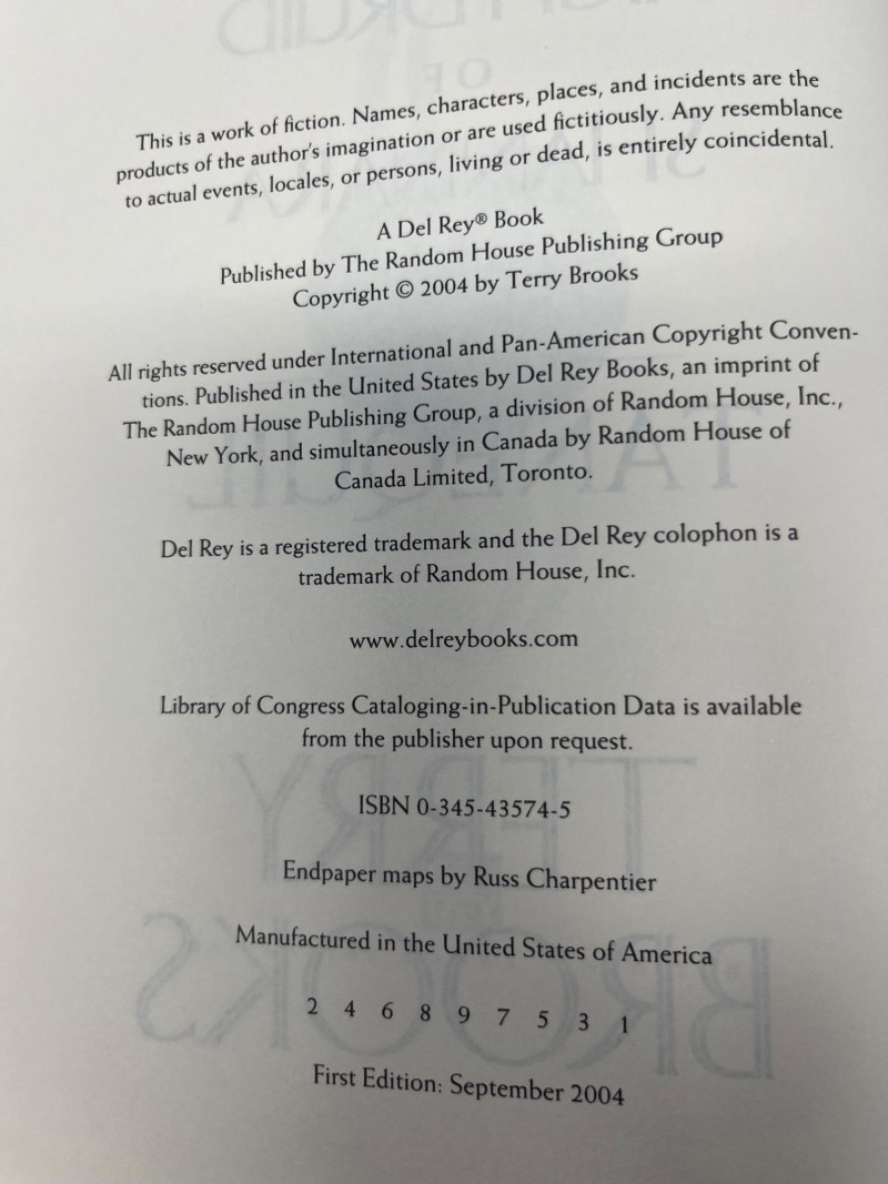 Clean, well-preserved examples with intact dust jackets and crisp interior pages. Suitable for collectors of modern fantasy literature and Terry Brooks completists.