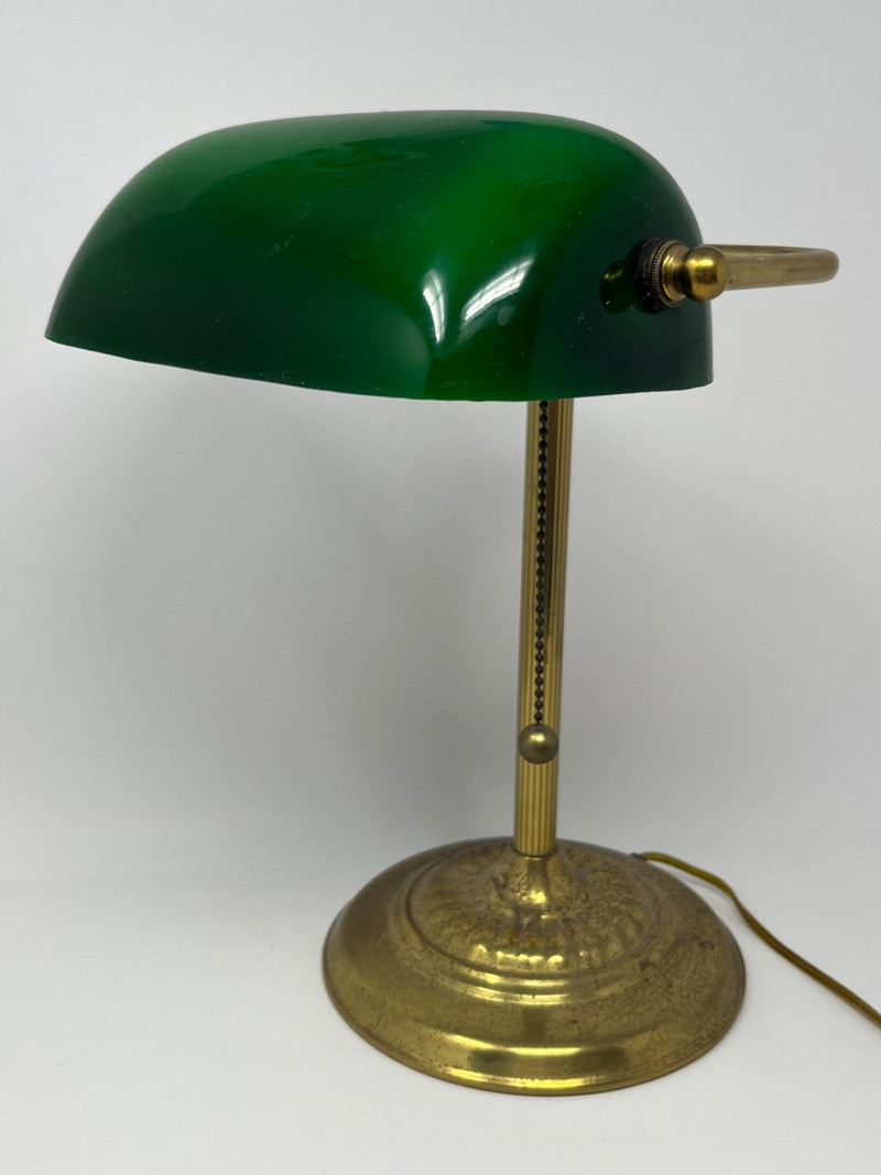 Lot # 52 - Vintage Green Glass Banker’s Desk Lamp with Brass‑Tone Base