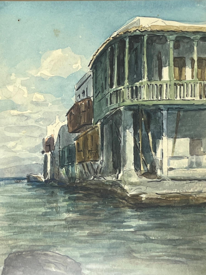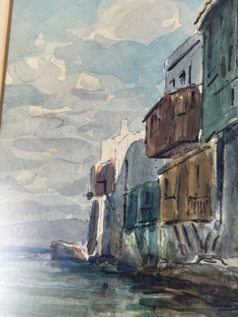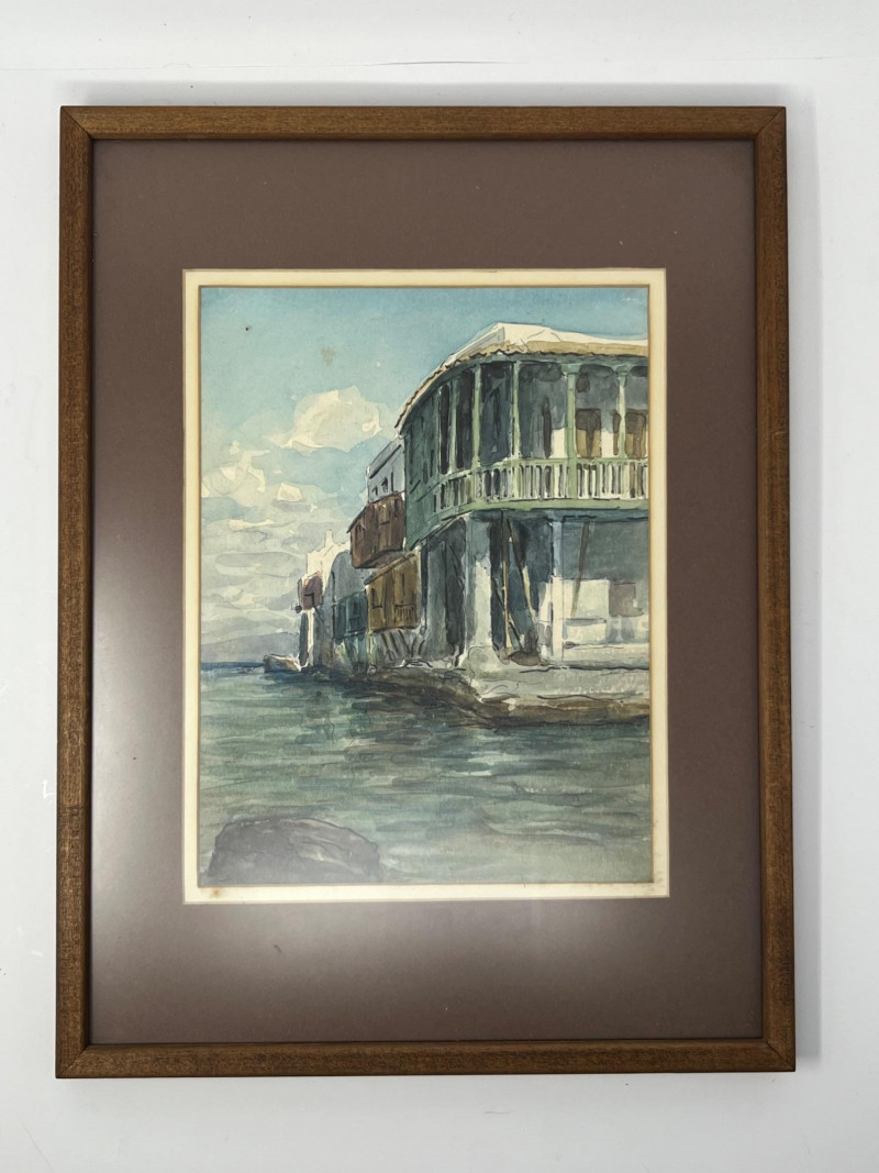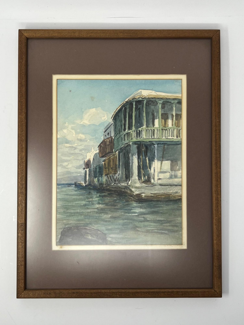 Lot # 54 - Signed Architectural Waterfront Watercolor – Framed with Gallery Label