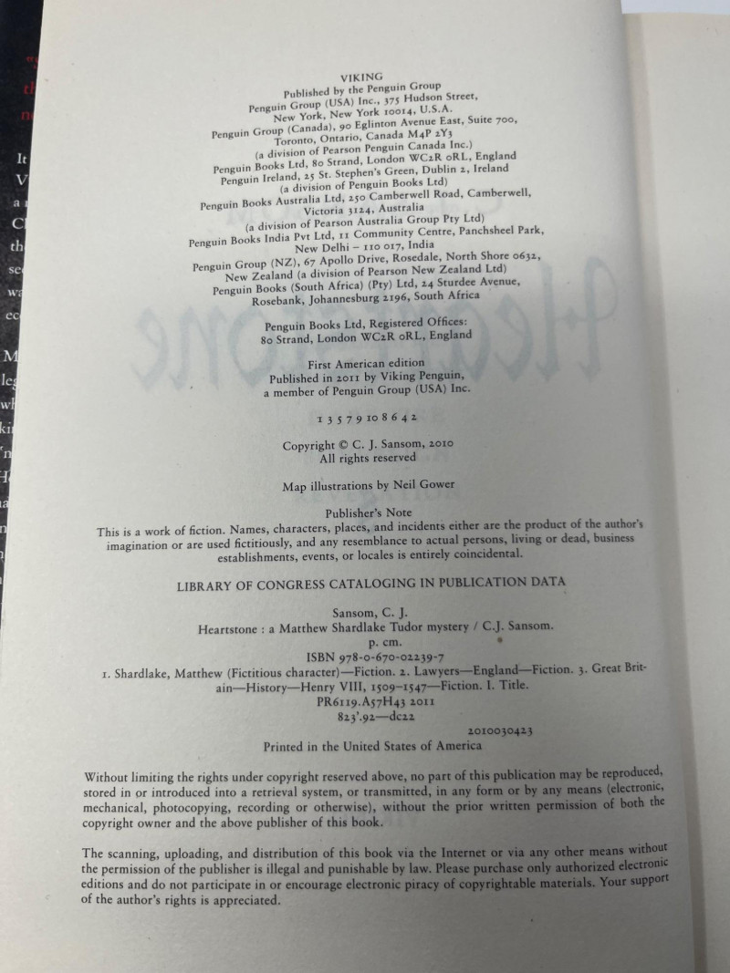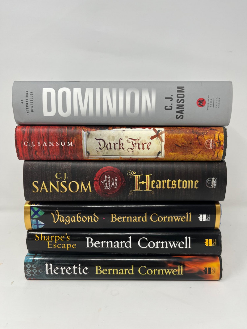 • Heartstone – First Edition Sansom’s novels are known for their atmospheric detail and strong historical grounding, including the Matthew Shardlake series and the alternate‑history standalone Dominion. All six books display original cover art and publication data confirming first edition status. A strong mixed‑author lot for collectors of historical fiction, estate buyers, and readers seeking foundational works from two major voices in the genre.