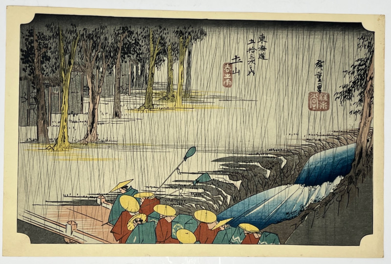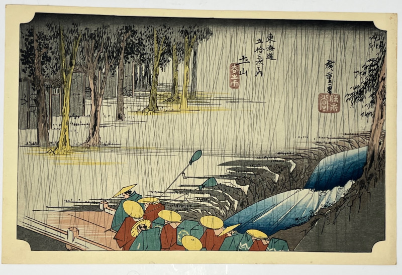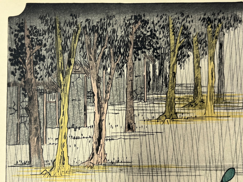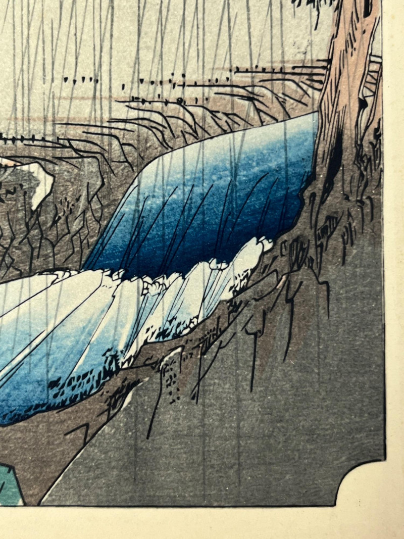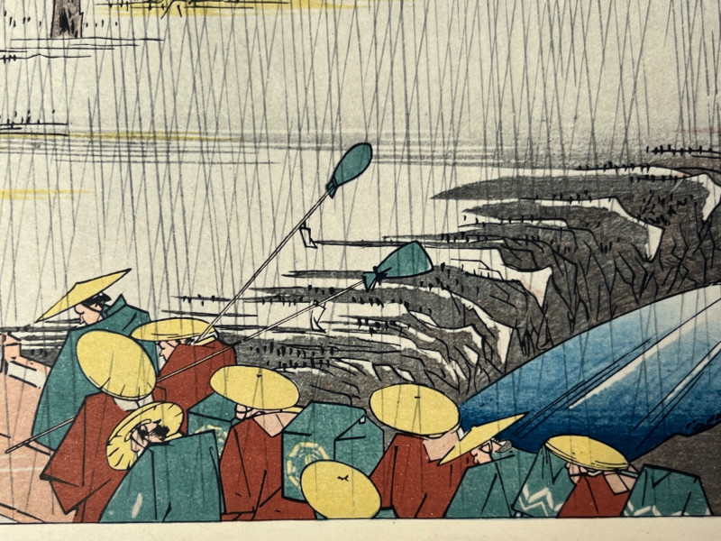 Lot # 61 - Utagawa Hiroshige Rain Scene Woodblock Print Reproduction