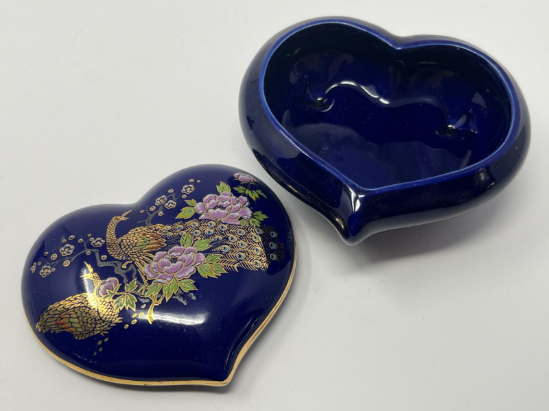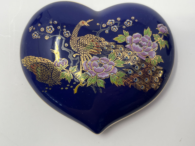– Heart-shaped lidded trinket box with matching design and Japan mark Condition