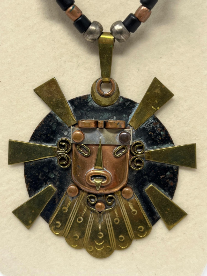 Lot # 123 - Betty Jensen 1960s Mixed‑Media Necklace - Mexican Brass/Copper Pendant