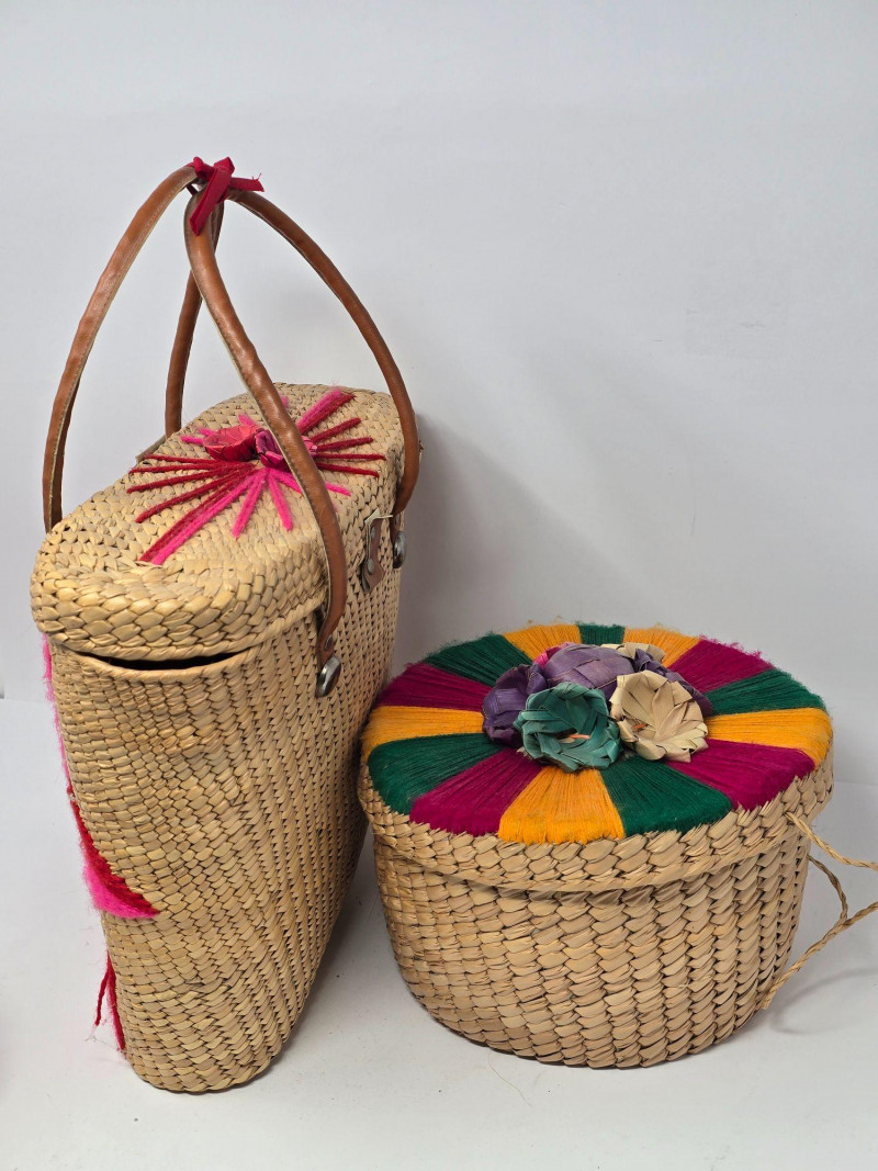 Lot # 127 - Vintage Mexican Woven Folk Craft Handbag and Basket Set