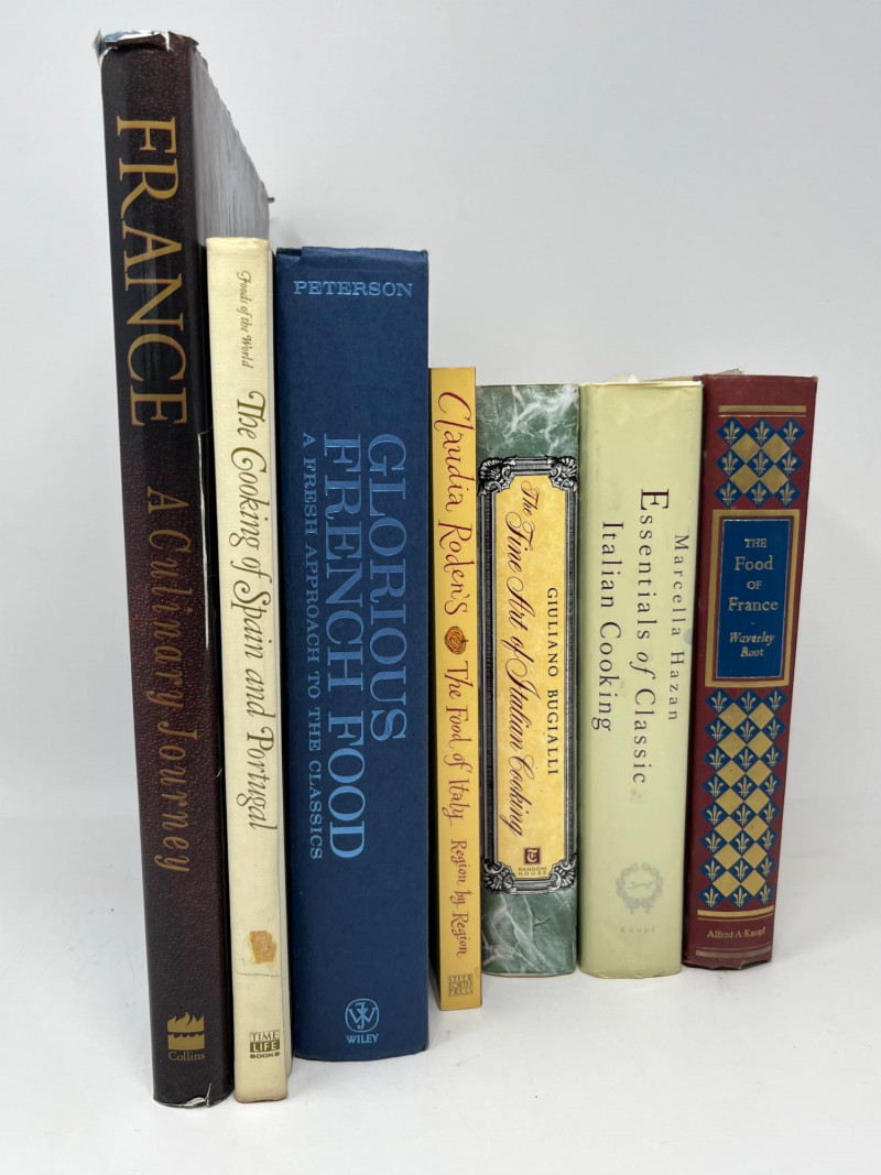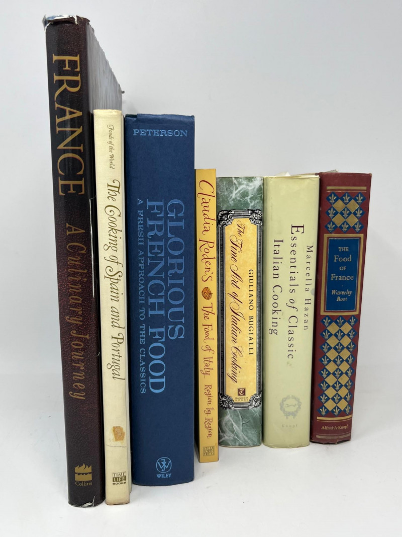 A curated grouping of seven cookbooks spanning French, Italian, and Iberian culinary traditions. This lot brings together influential authors and foundational texts that remain central to understanding European regional cooking. The selection includes works focused on classic techniques, historical context, and traditional recipes, appealing to both collectors and dedicated home cooks. French titles include France: A Culinary Journey, Glorious French Food: A Fresh Approach to the Classics, and The Food of France, each offering insight into regional specialties and the evolution of French cuisine. Italian selections feature Claudia Roden’s The Food of Italy, Giuliano Bugialli’s The Fine Art of Italian Cooking, and Marcella Hazan’s Essentials of Classic Italian Cooking, all widely regarded as essential references. Also included is The Cooking of Spain and Portugal, expanding the lot’s coverage of European culinary heritage. Includes: France: A Culinary Journey The Cooking of Spain and Portugal Glorious French Food: A Fresh Approach to the Classics The Food of Italy The Fine Art of Italian Cooking Essentials of Classic Italian Cooking The Food of France Notes: