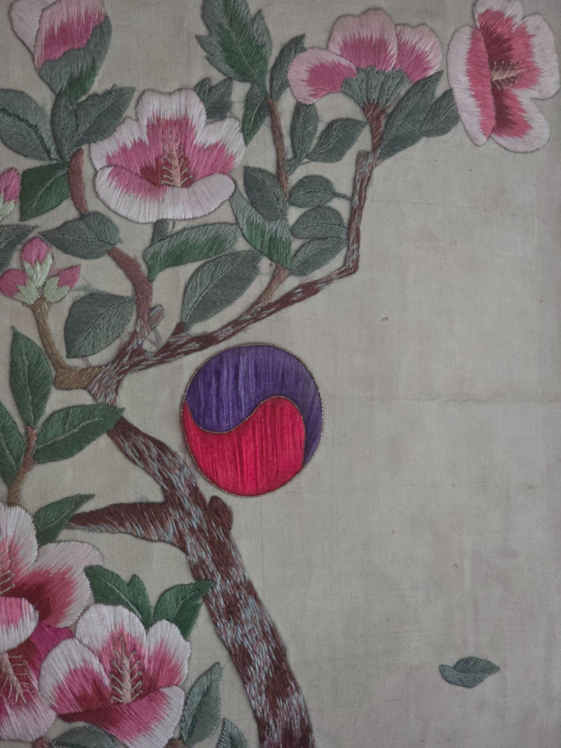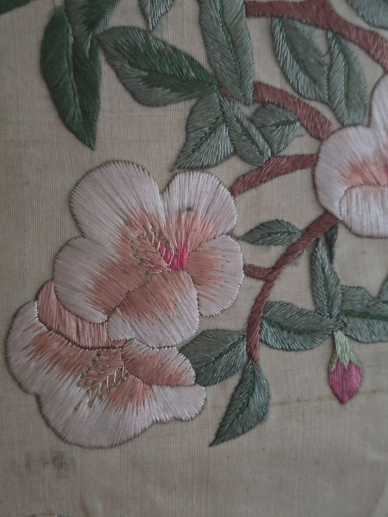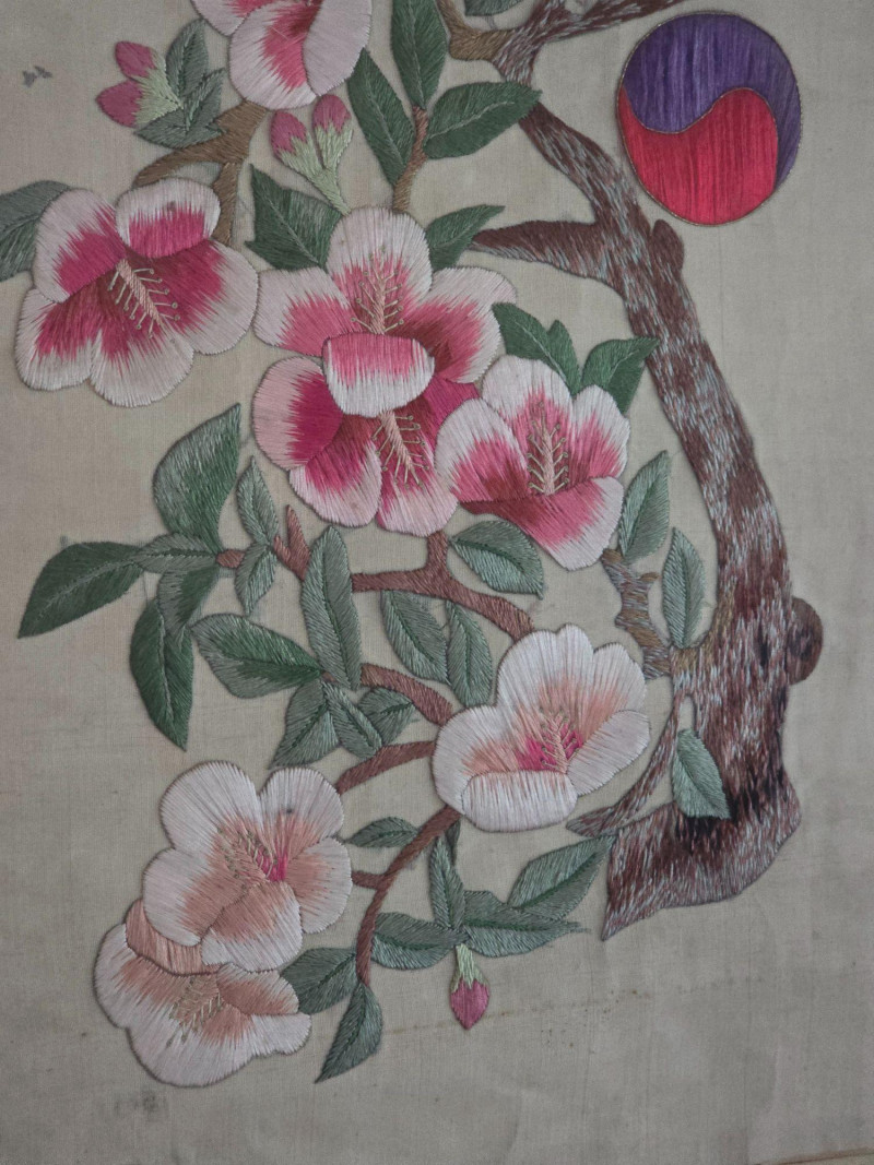 Lot # 155 - Embroidered Textile Art – Blossoming Branch with Vase and Medallion