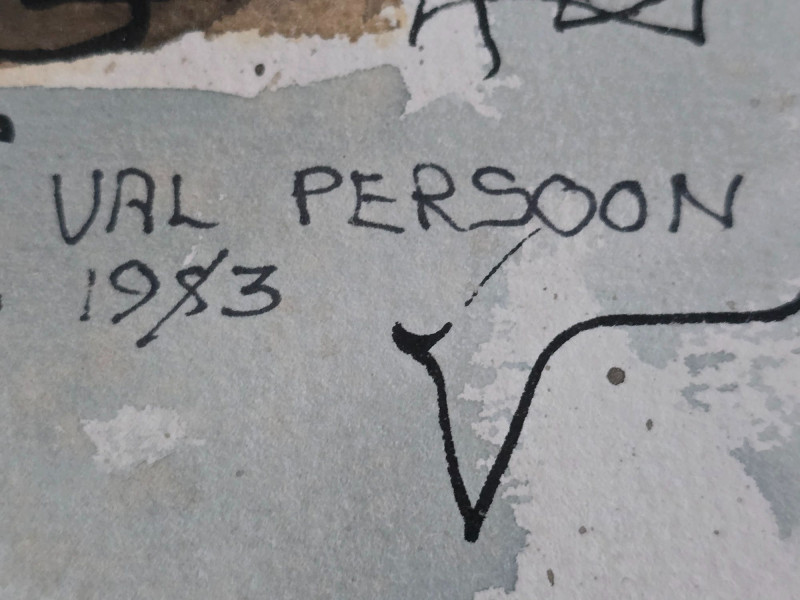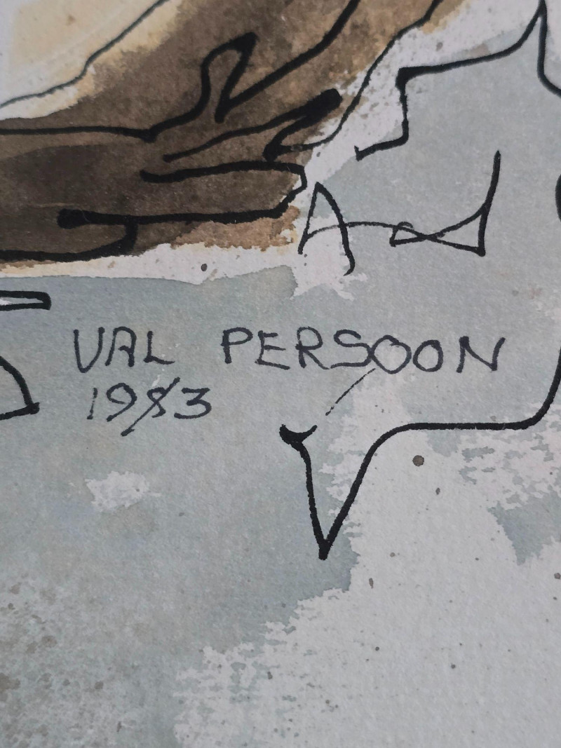 Val Persoon is known for expressive watercolor and ink compositions that blend traditional still‑life subjects with a relaxed, illustrative hand. Active during the late 20th century, Persoon’s work often features floral arrangements, domestic objects, and everyday scenes rendered with a balance of structure and spontaneity. Persoon’s pieces are appreciated for their warm palettes, approachable subject matter, and painterly technique, making them appealing to collectors of regional and decorative watercolor art. Artist: Val Persoon