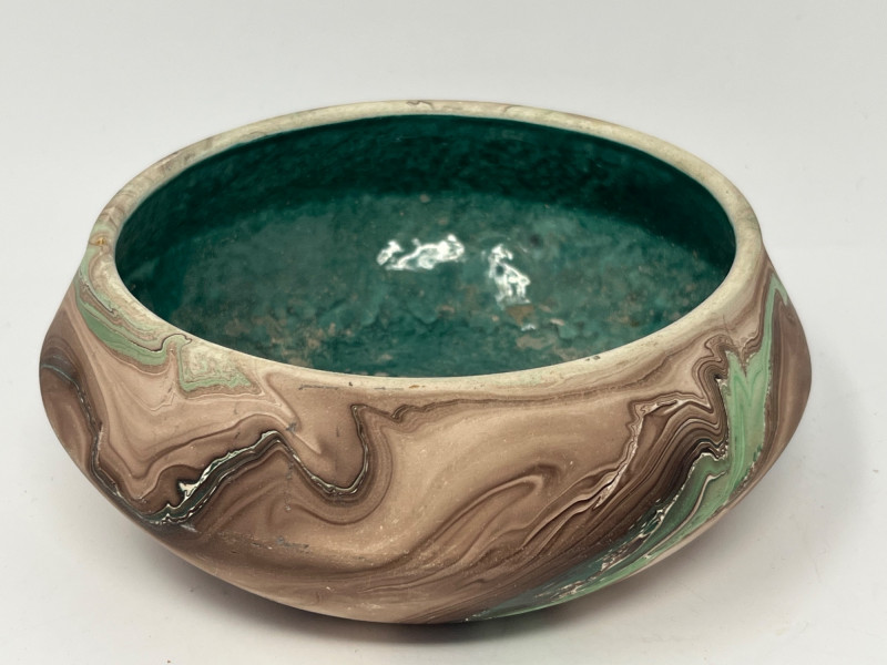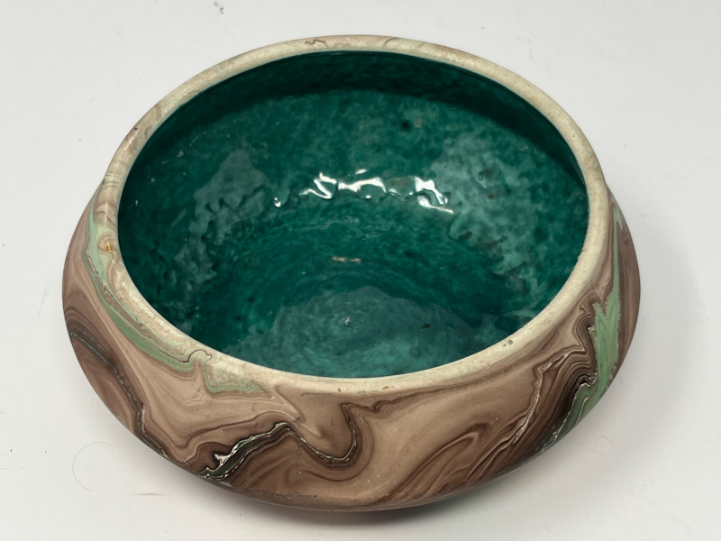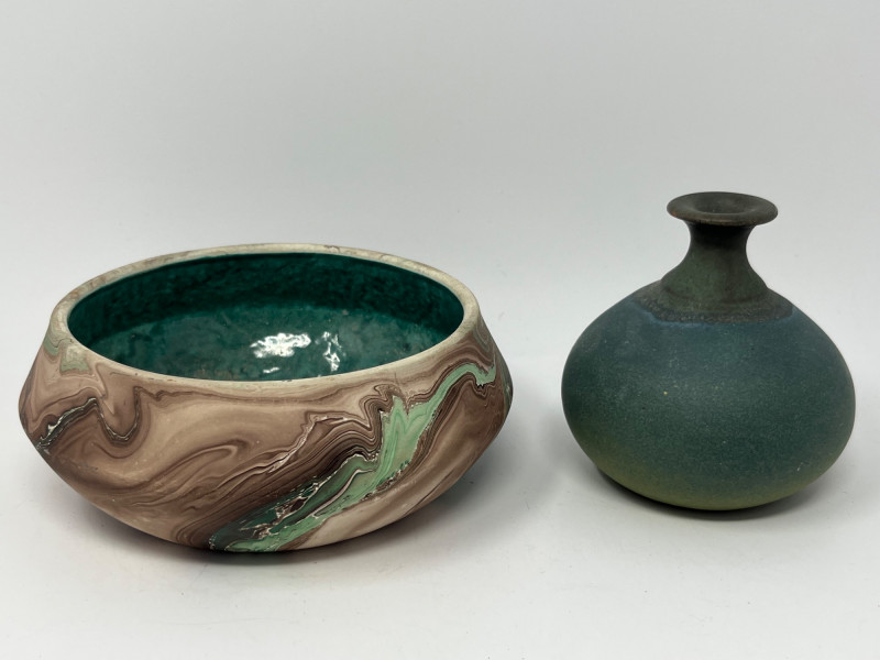 Lot # 162 - Virginia City, Montana Marbled Art Pottery Bowl & Teal Studio Vase