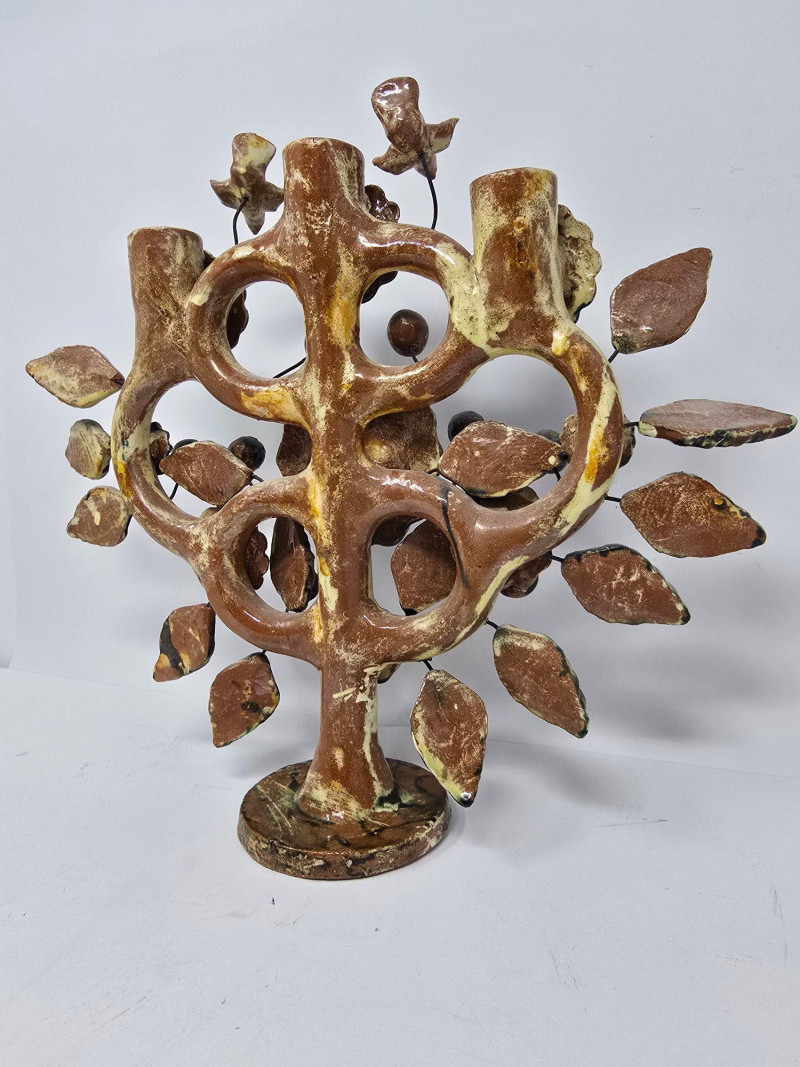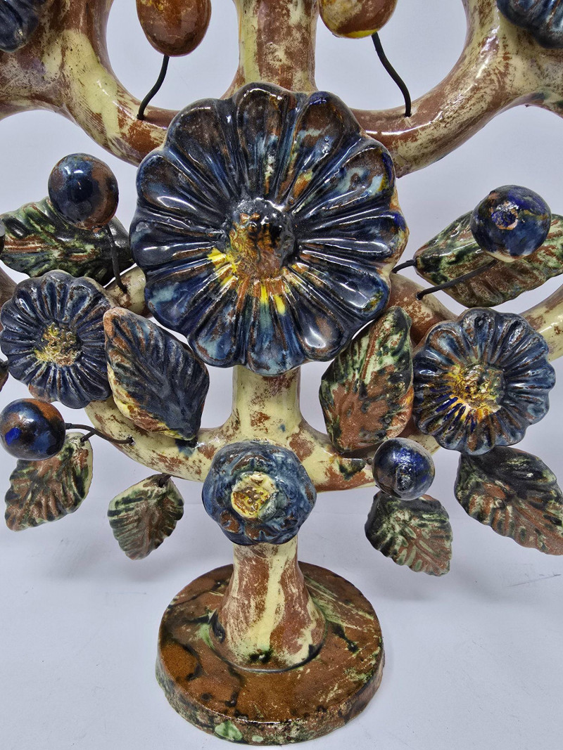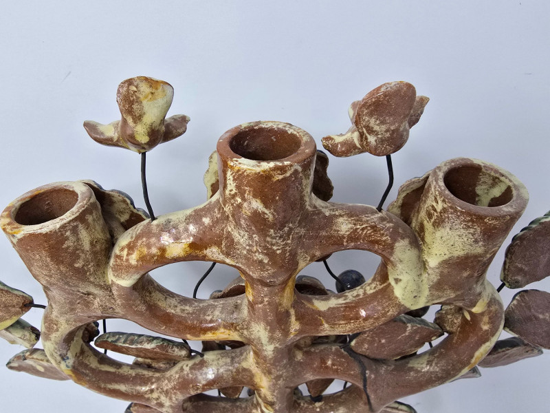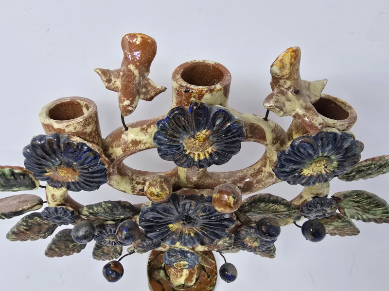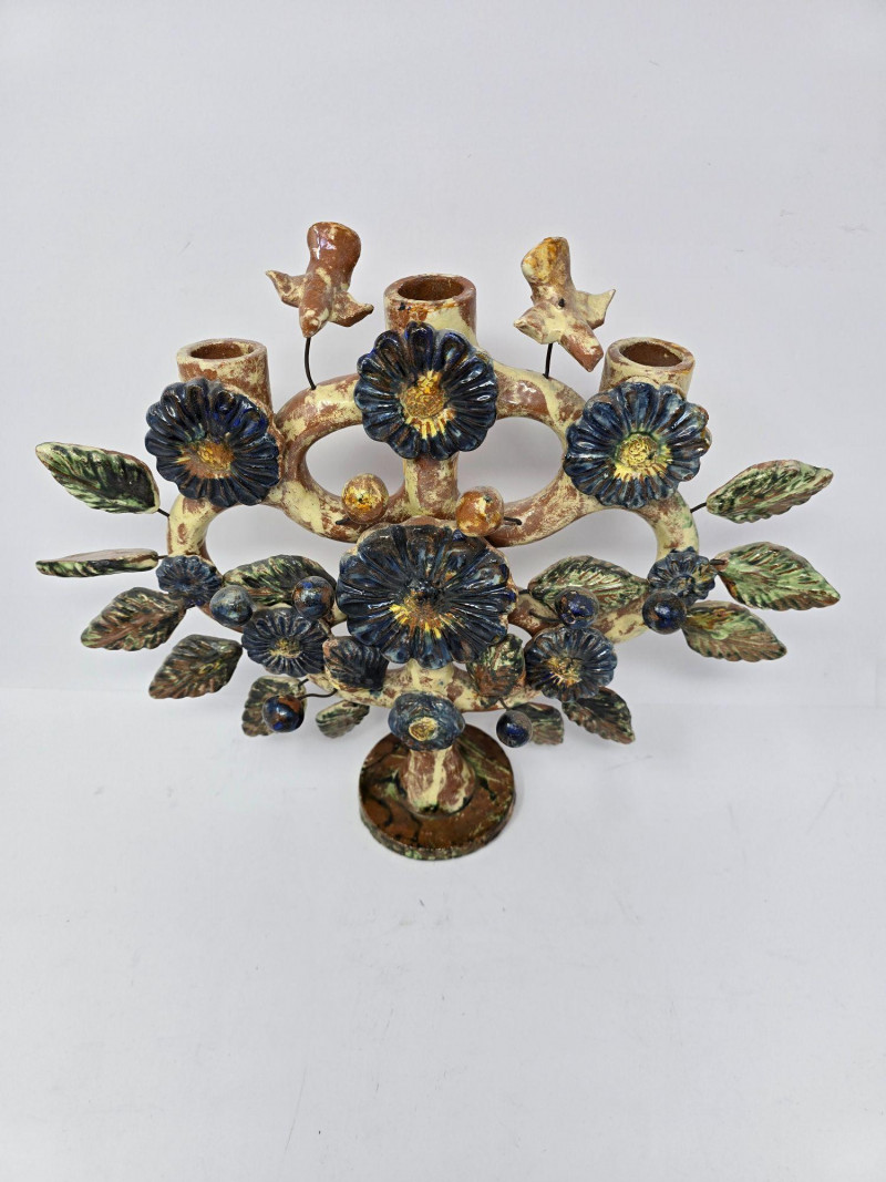Lot # 167 - Hand‑Painted Ceramic “Tree of Life” Candelabra with Birds and Flowers