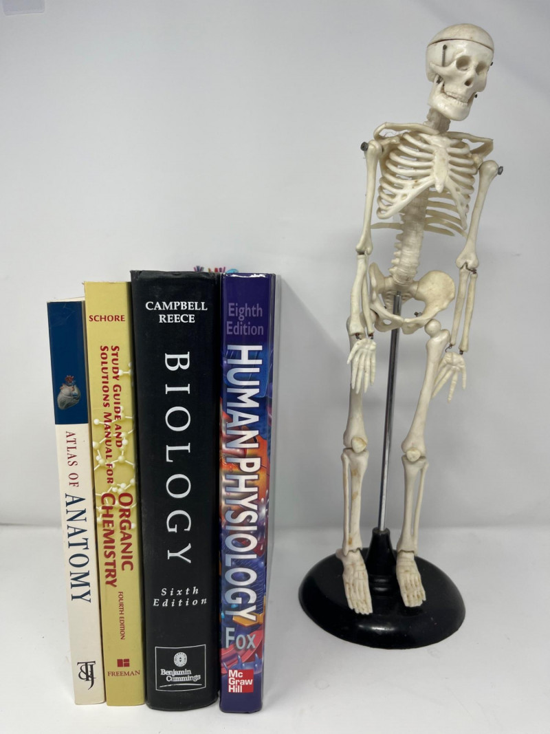 Lot # 170 - Anatomy & Biology Study Lot with Mini Skeleton Model and Textbooks