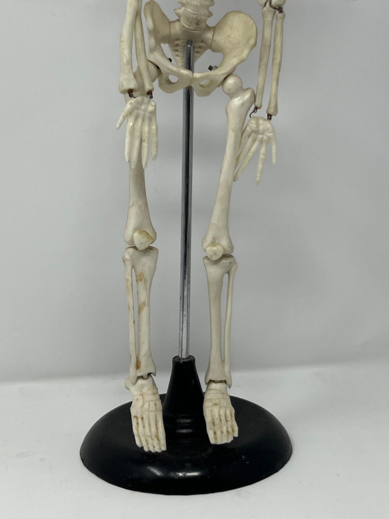 Collection of academic study materials ideal for students, educators, or home reference. Includes a small anatomical skeleton model on stand along with a selection of foundational science textbooks. Titles visible in the lot include Anatomy, Human Physiology, Biology, Atlas of Anatomy, and an Organic Chemistry study guide. The skeleton model shows standard anatomical structure and is suitable for basic study or display. Textbooks present general signs of use consistent with academic materials. Covers and spines show handling, with interior pages appearing intact based on visible inspection. A practical, education-focused lot offering a mix of anatomy, physiology, biology, and chemistry resources. Suitable for study, tutoring, or supplemental reference.