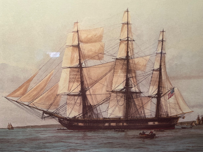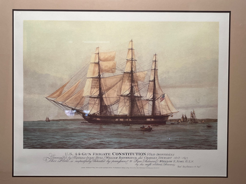 – Framed maritime print of the U.S. Navy frigate Constitution