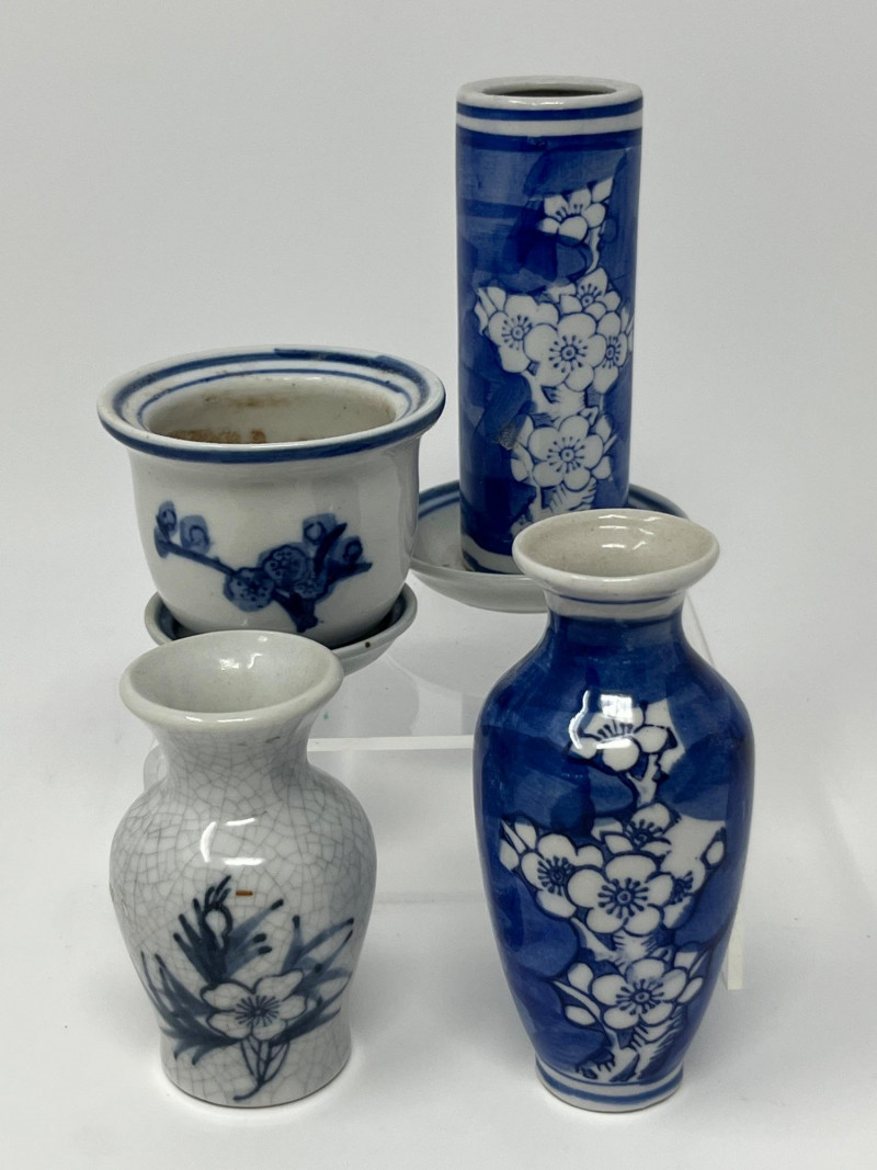 Lot # 193 - Miniature Blue‑and‑White Ceramic Vessels – Assorted Forms