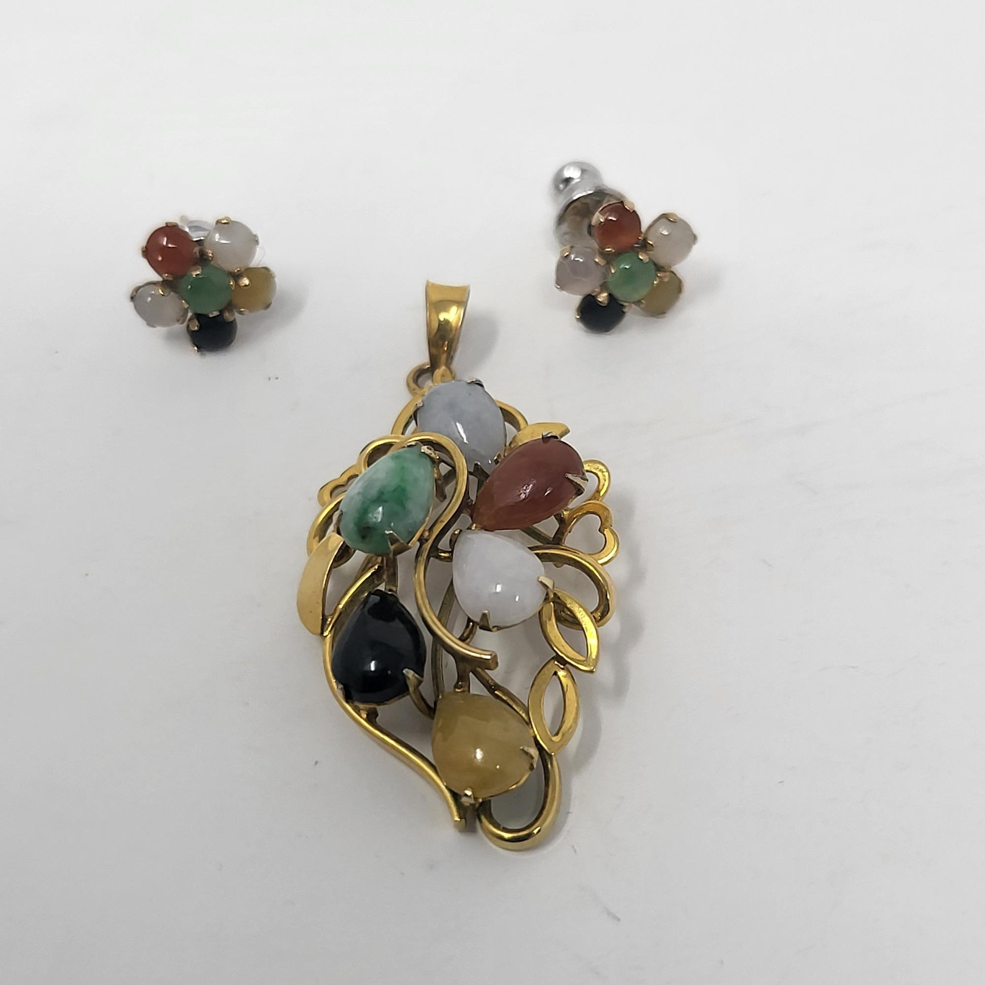 1.25" pendant with semi precious stones. Stamped 14k 585 1/4" matching post earrings unmarked.