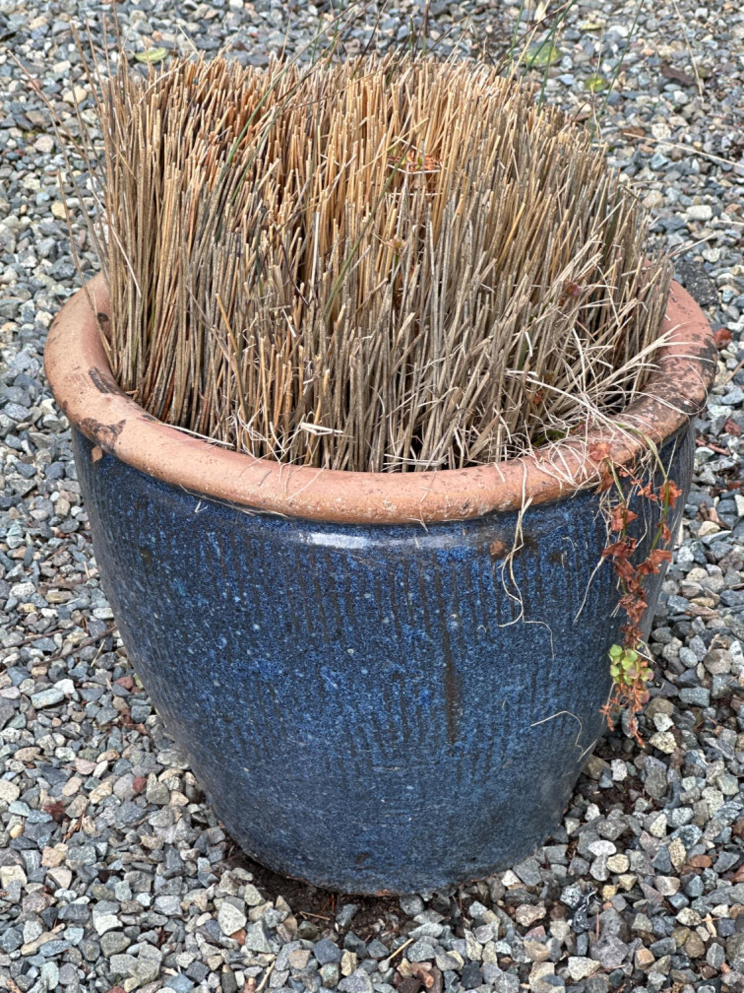 Blue Textured Glazed Ceramic Planter/Pot 15” w x 13” h *there is three total of these- all listed separately