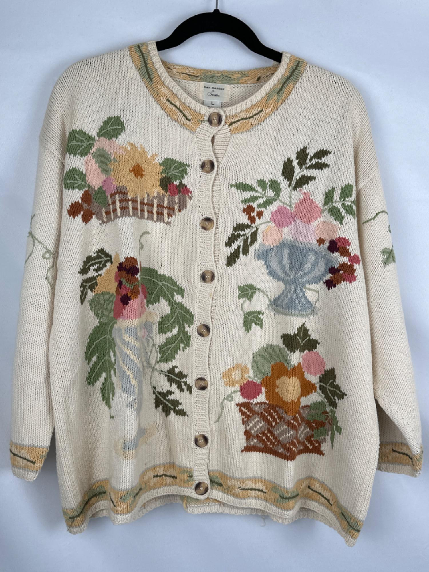 Nan Hadden Vintage Studio Floral Cotton Sweater Cardigan- L *please note a few spots on front of sweater