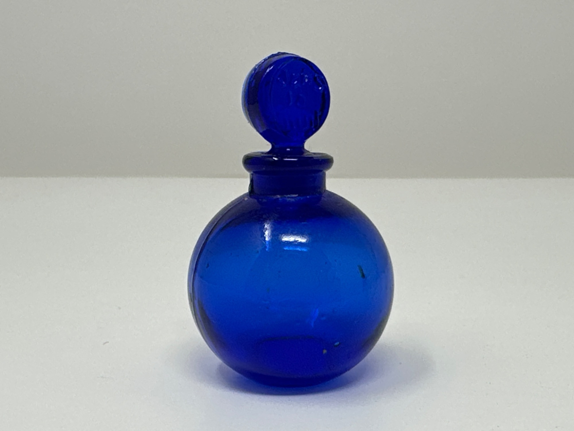 Vintage Cobalt Blue "Dans Le Nuit" PARFUM 1 oz Bottle *empty Tiny! 1 7/8” H x 1 1/4” W