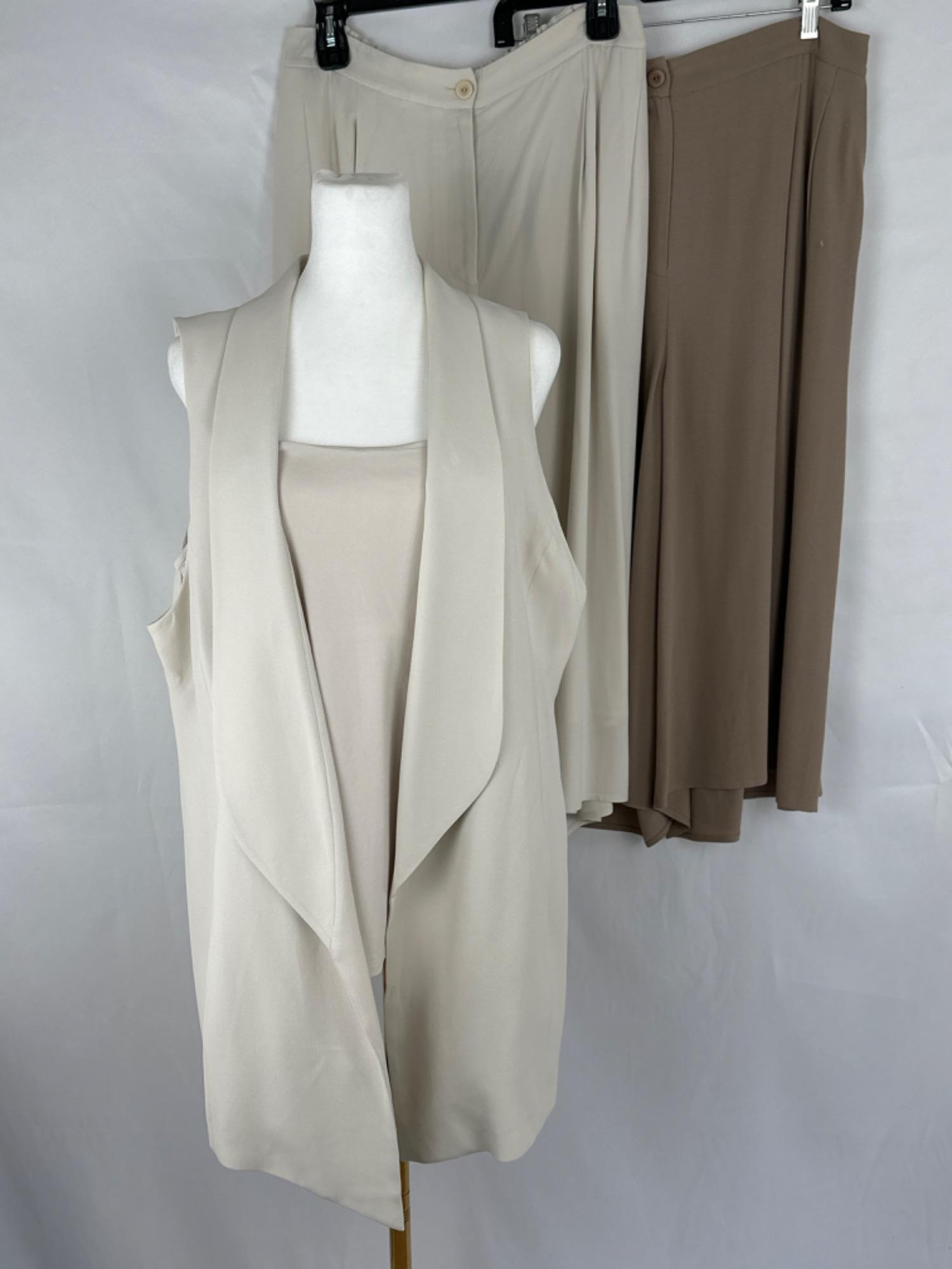 Lot # 157 - Eileen Fisher Taupe Georgette Pants, Tank, Vest- 4 pc XL