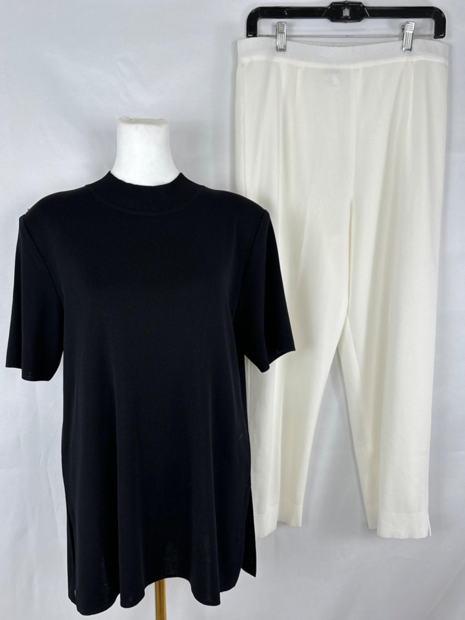 Lot # 190 - Exclusively Misook Black Sweater & White Knit Pant Set - L