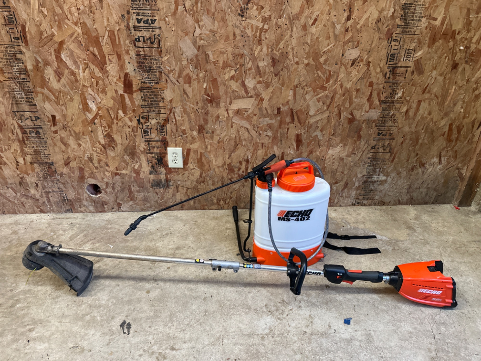 Echo Trimmer & Sprayer Trimmer/Weedeater Tested & Works (tested with a battery that sold on last auction) Hand pump sprayer MS-402 *trimmer battery is not included