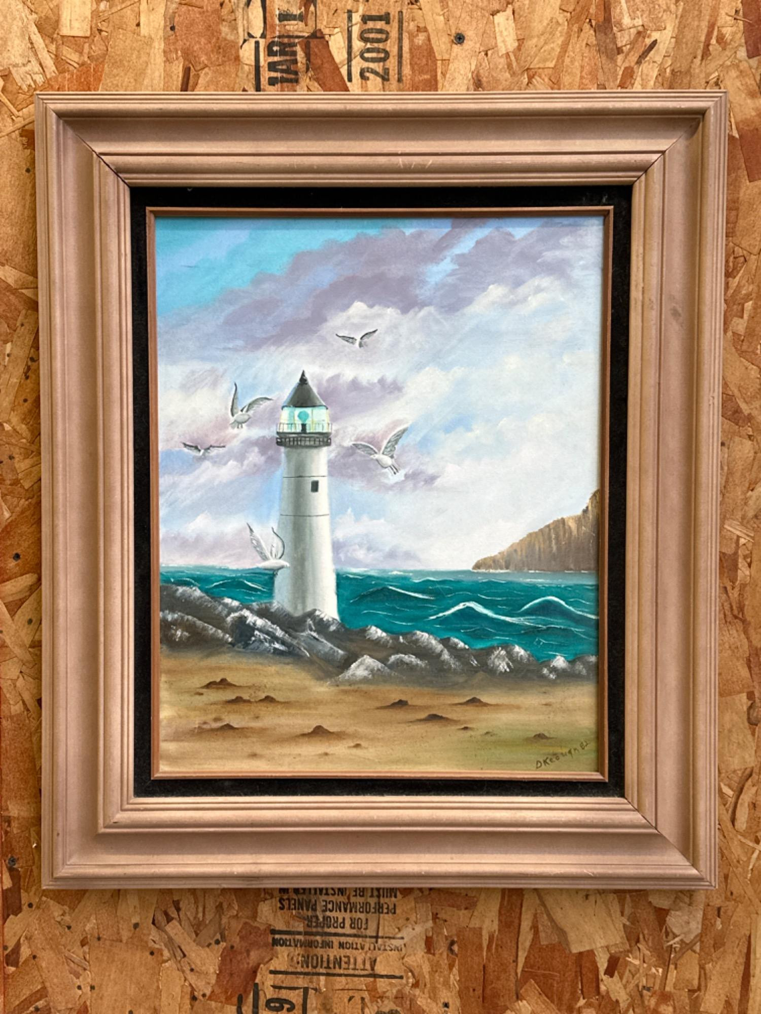 Lighthouse Painting on Canvas & Framed Signed D Keough 1982 24” h x 28” w