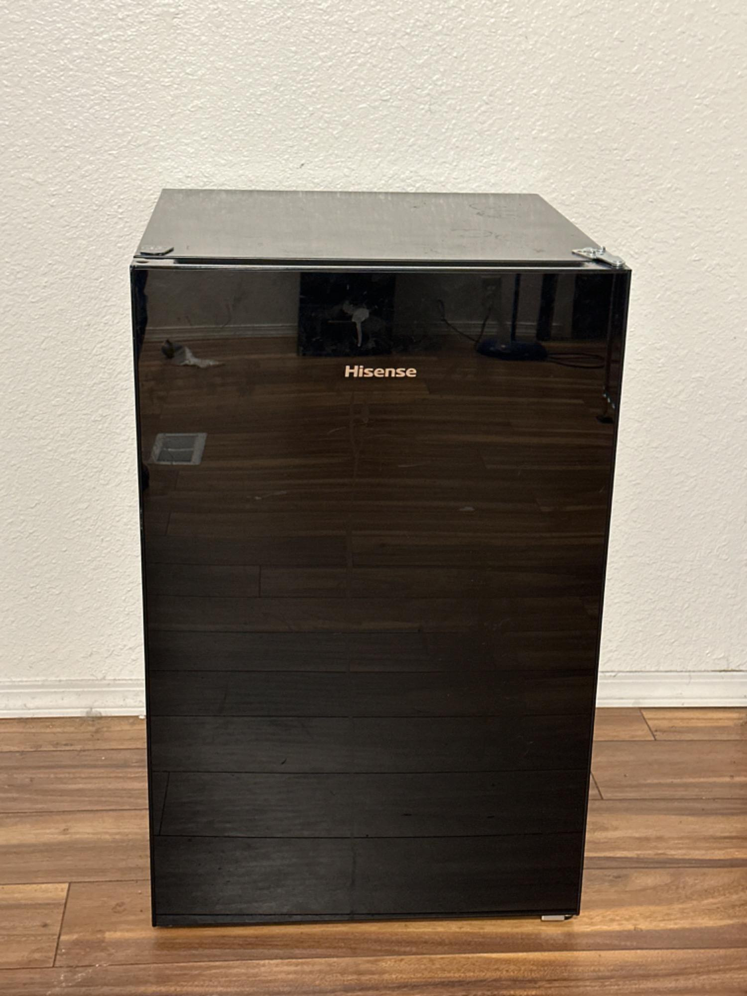 Hisense Refrigerator Model #RS44G1 4.4 cubic foot *appears bottom tray on door is missing and possible last shelf in unit?