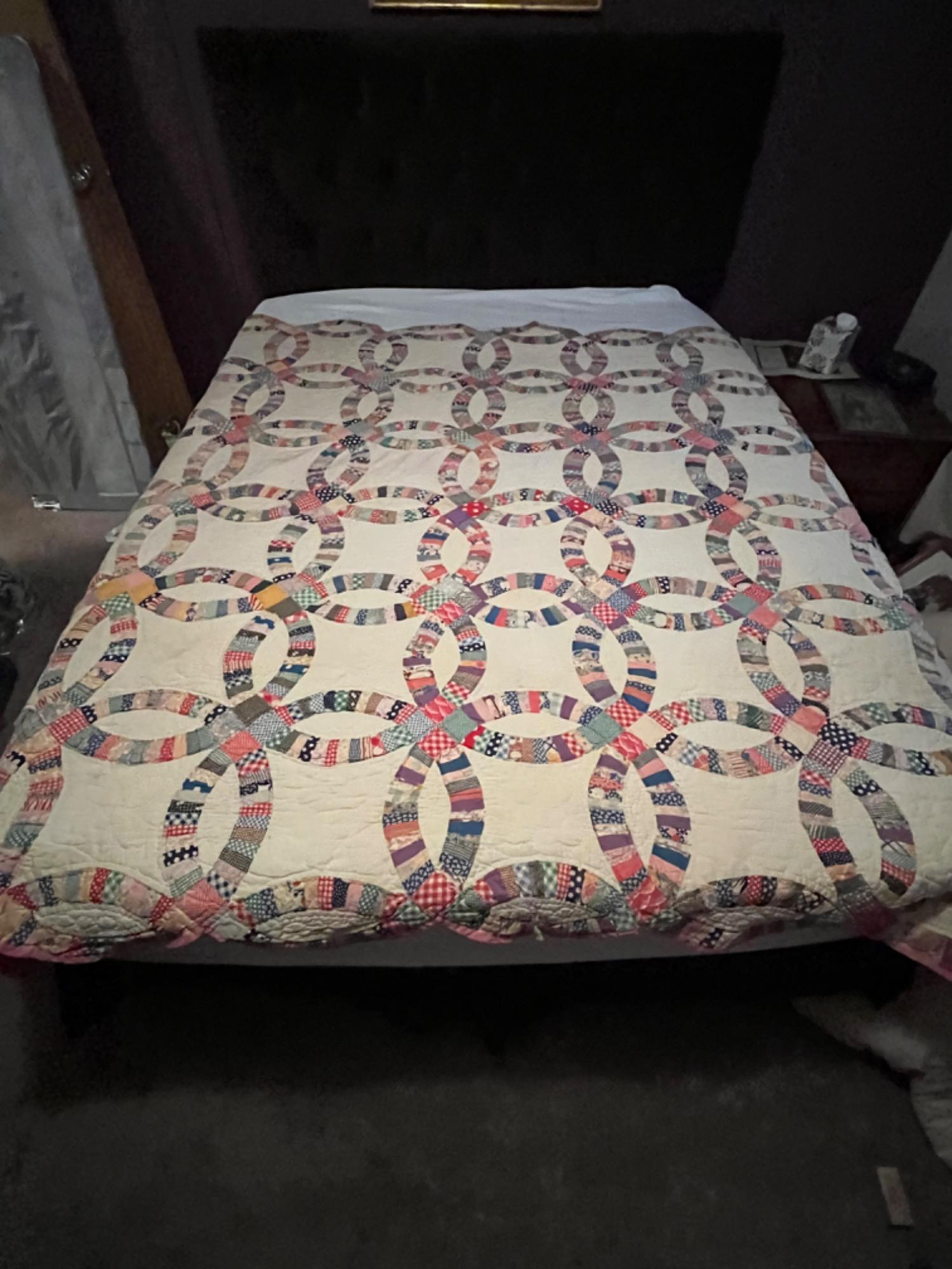 Lot # 79 - Vintage Handmade Wedding Ring Quilt