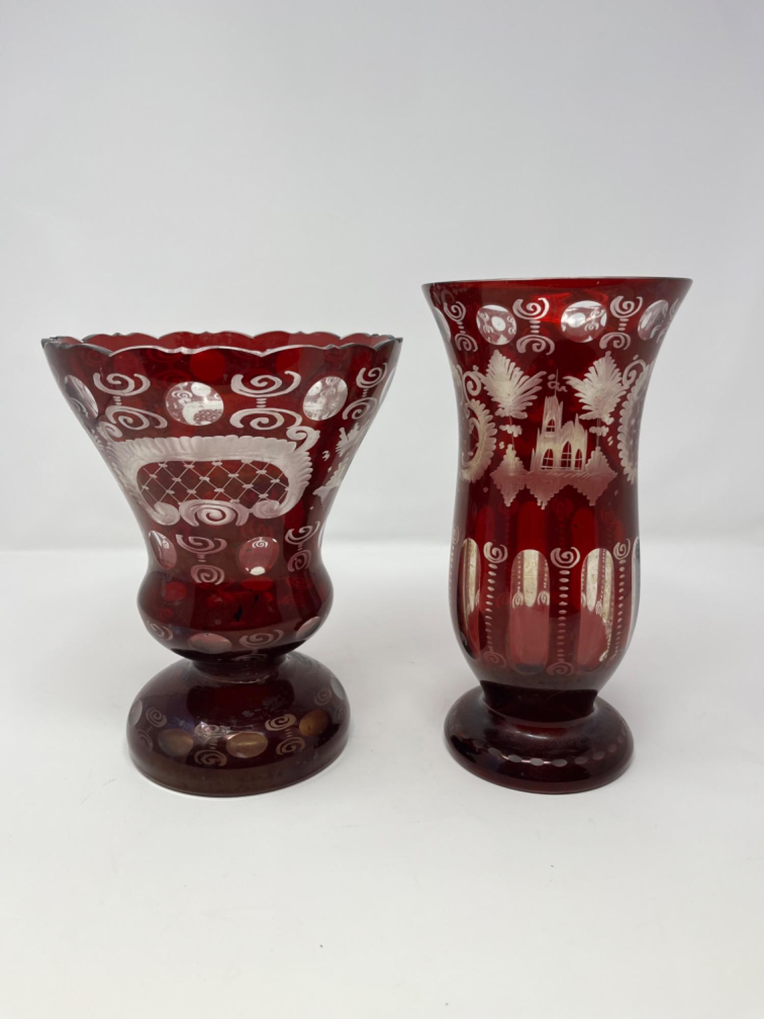 Lot # 81 - Bohemian Red Cut Glass Vases