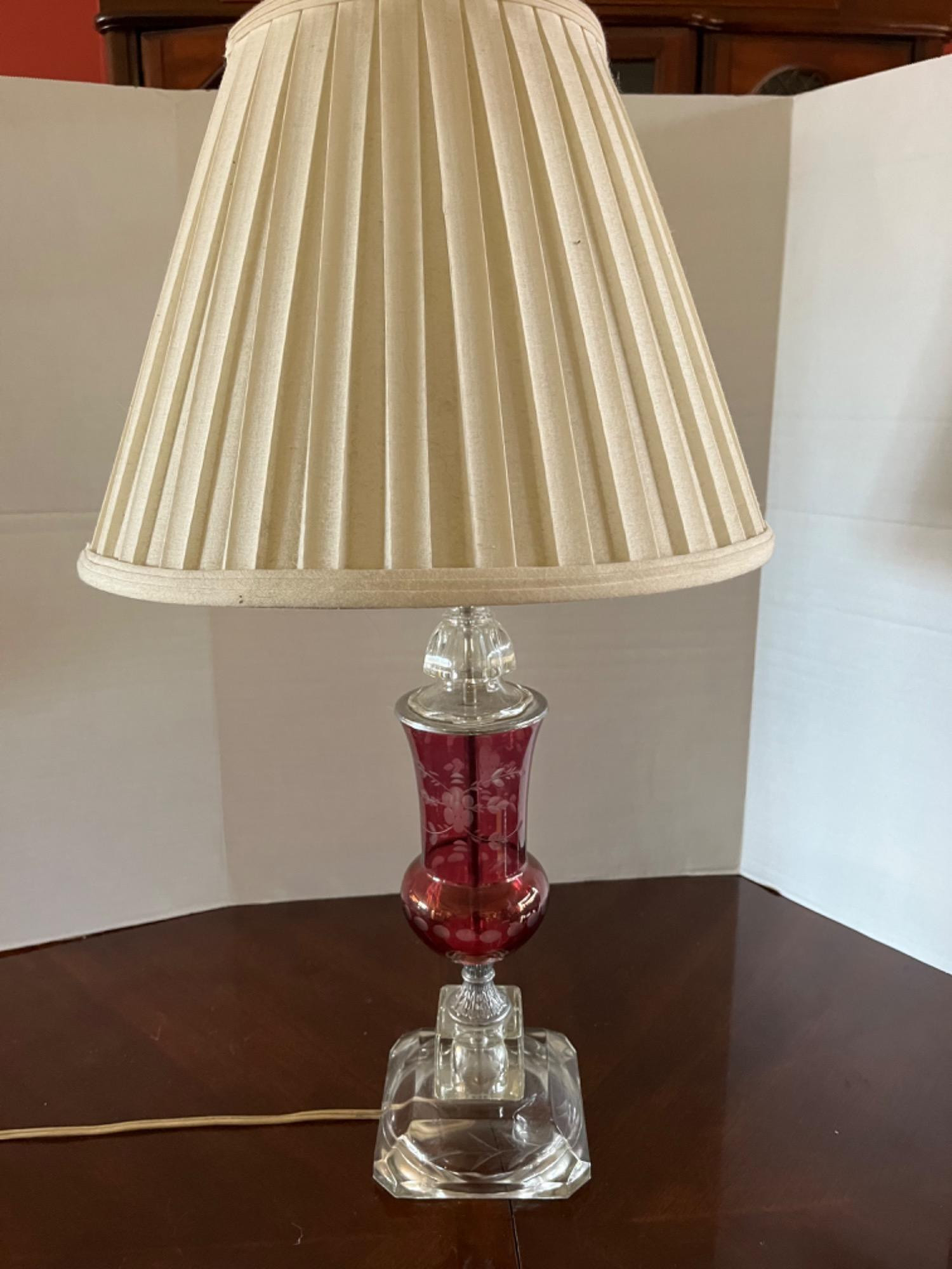 Lot # 122 - Vintage Cranberry Glass Table Lamp