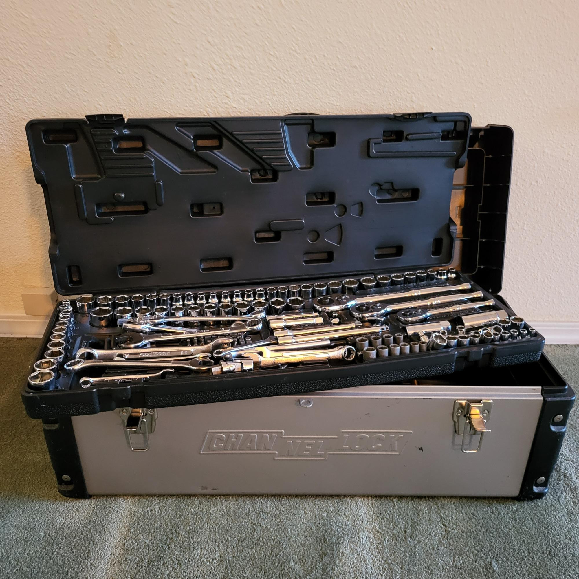 Lot # 63 - Useful Tool Variety In Channel Lock Box - Ratchet & Socket Set