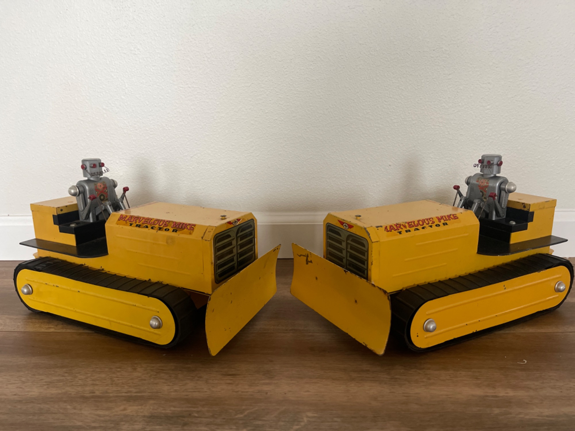 Lot # 29 - (2) Vintage Mid Century Saunders Marvelous Mike Tin Tractors
