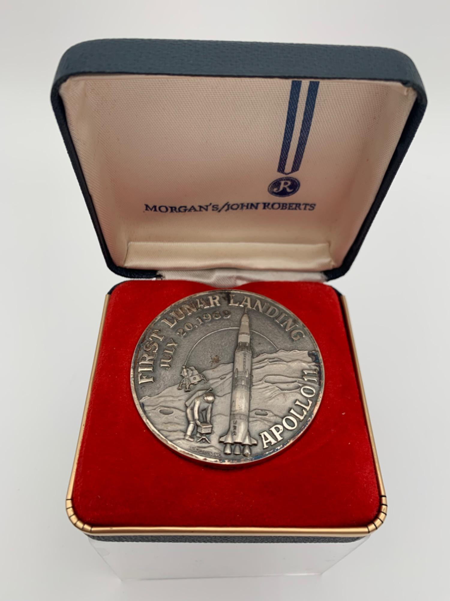 Lot # 121 - Vintage John Roberts Silver Apollo 11 Landing Coin - 1969
