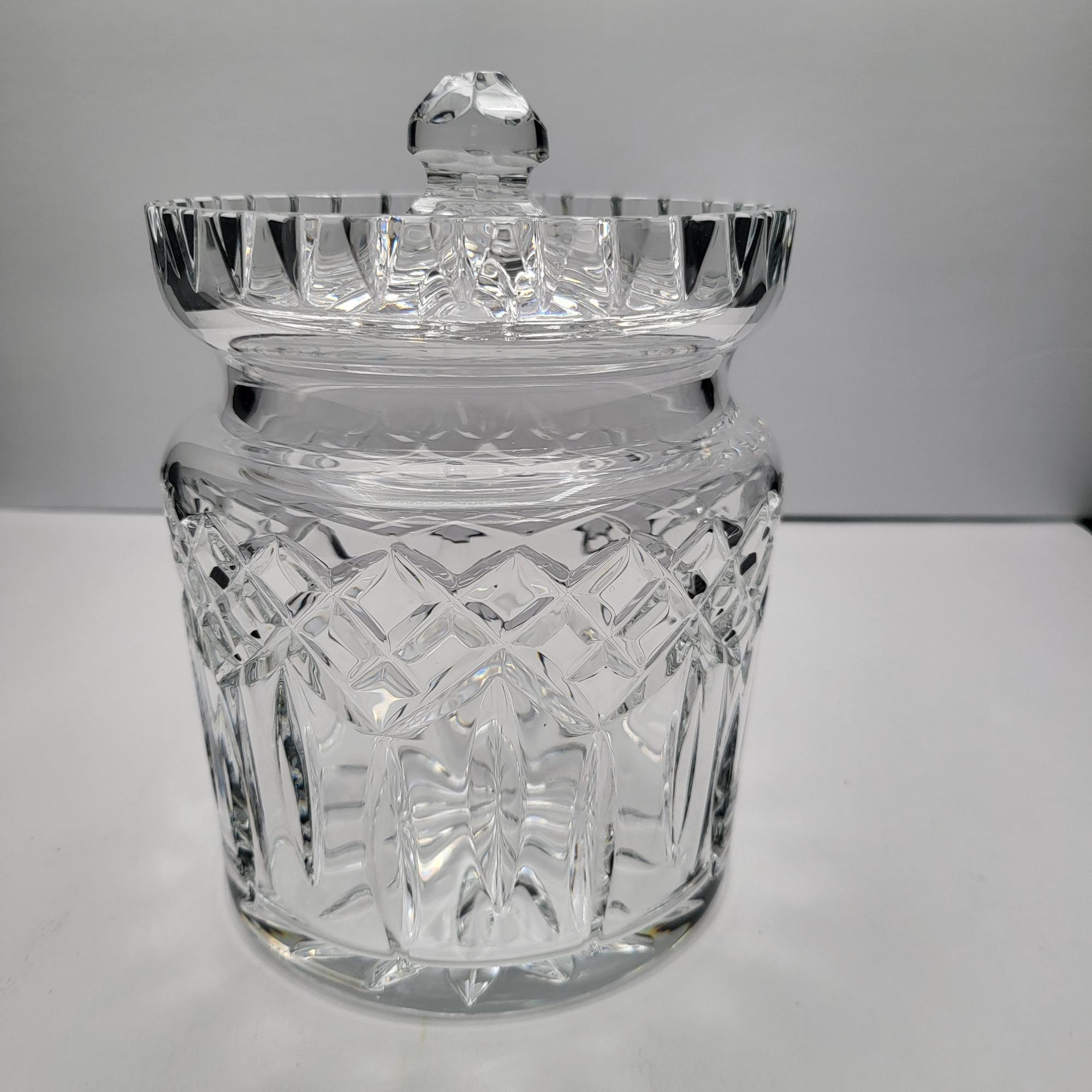 Made in Ireland, Lismore Waterford Crystal Biscuit Barrel, 7" T x 4.75" W. In box.