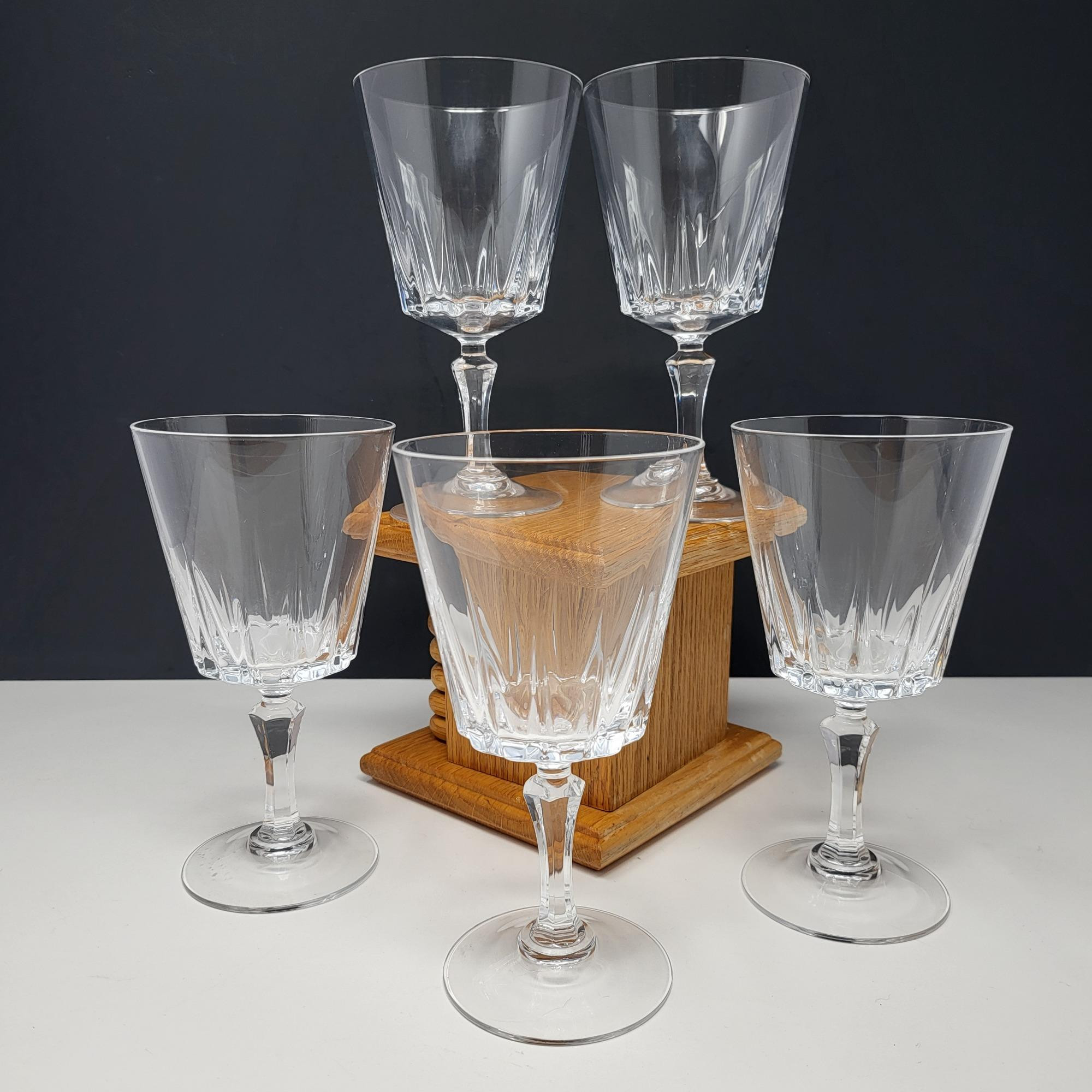 Five Cristal D'Arques, fine crystal stemmed wine glasses. Height is 6.75".