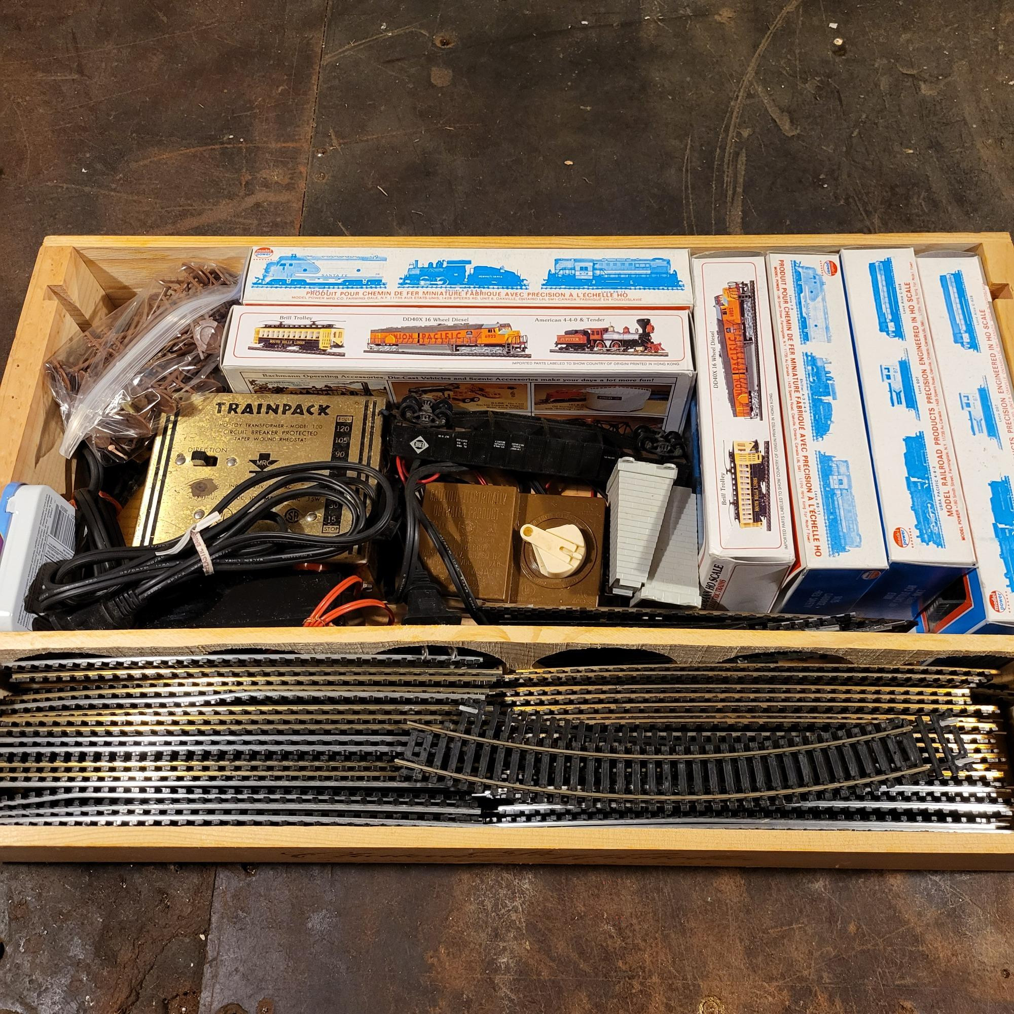 Lot # 53 - Wood Crate With Trains & Track (#1)