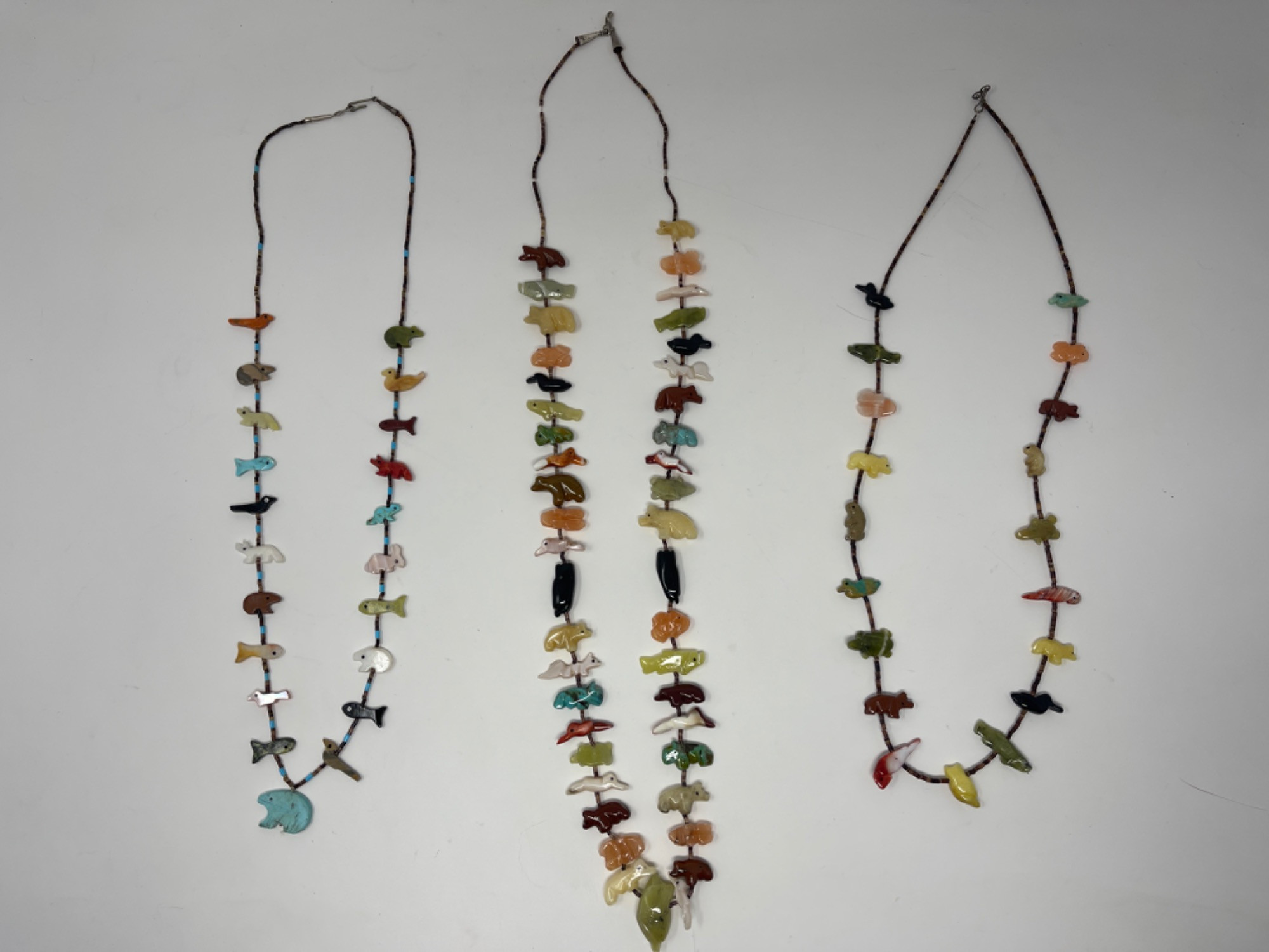 Lot # 28 - (3) Vintage Navajo-Inspired Zuni Fetish Necklaces - (2) Sterling