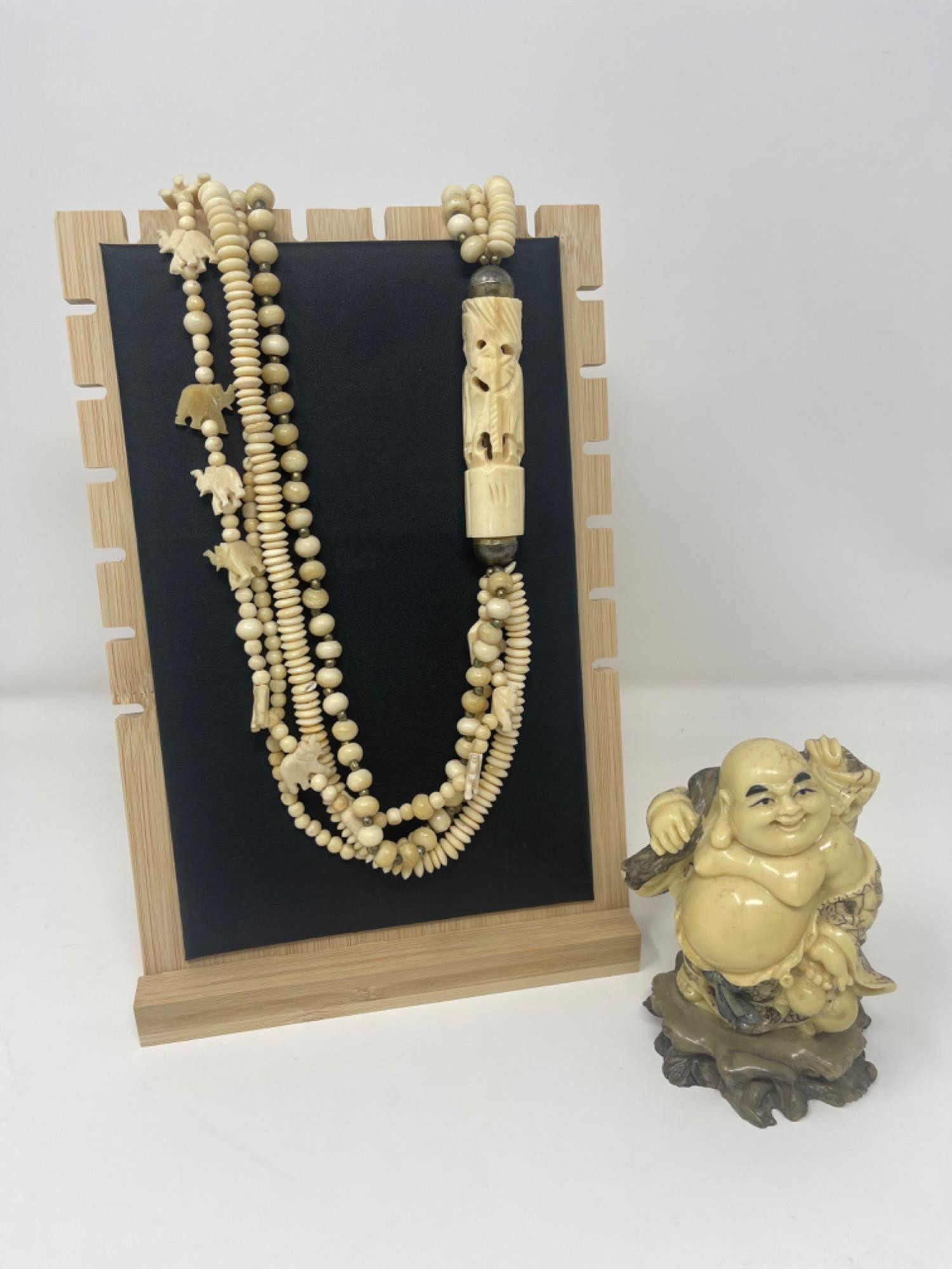 Lot # 52 - Vintage Carved Bone Necklace & Happy Buddha Statue