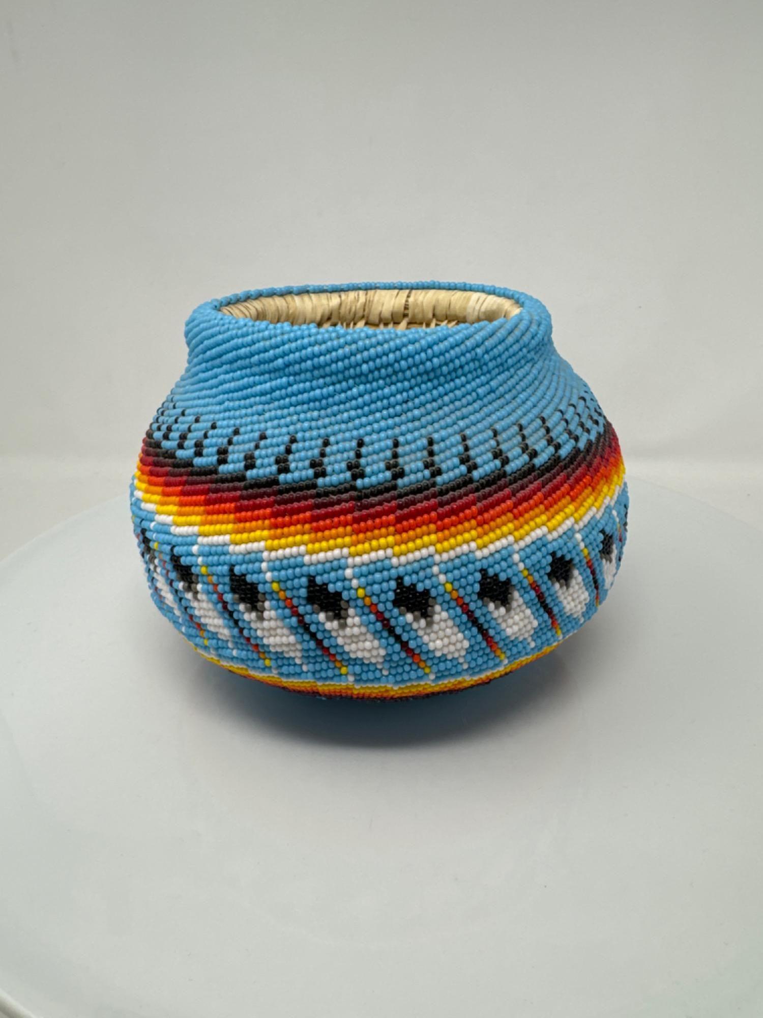 Lot # 3 - Bernice Benally - Navajo Seed Bead Woven Feather Pot $600