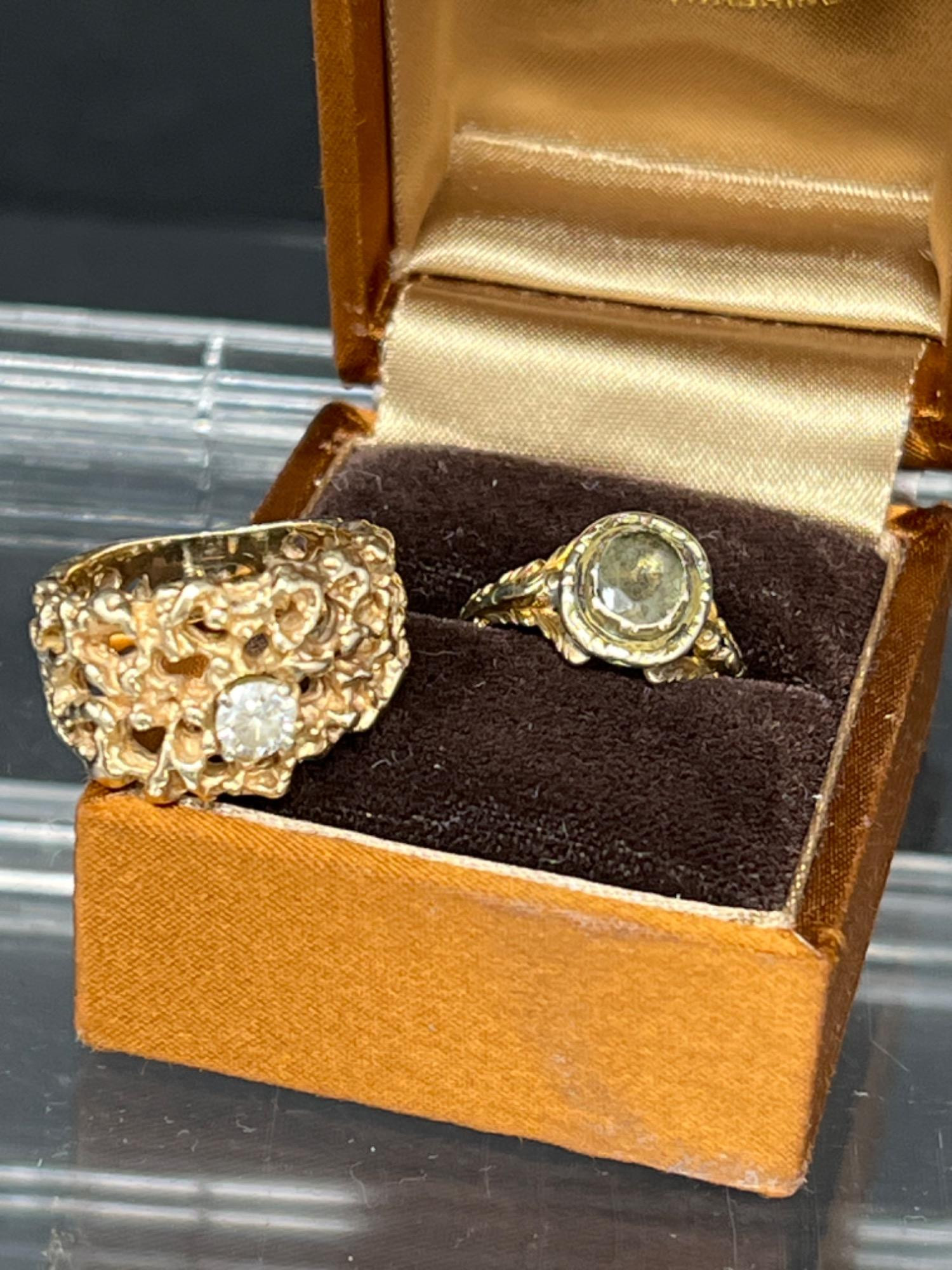 Lot # 25 - Brutalist Diamond Ring + Amethyst Ring - Possibly Gold