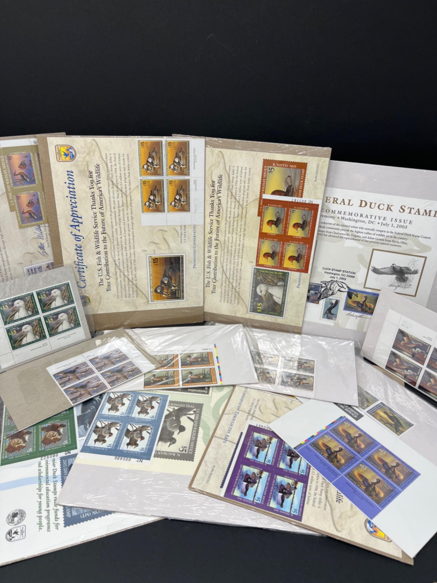 Assortment of wildlife - ducks and geese and other birds issued from Department of the Interior, United States promoting conservation of migratory birds; includes The Federal Duck Stamp - commemorative issue (limited to 750 issued). Total face value: $510