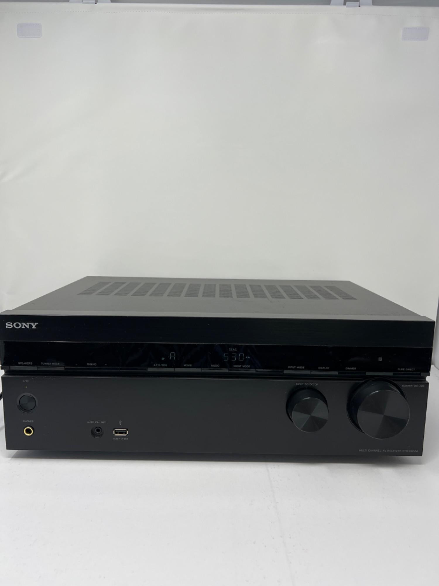 Sony Multi-channel AV Receiver with FM, AM radio modes. 5.2 channels and 4 inputs. Model STR-DH550. Analog, Digital features with 145 W power and 4 Outputs. No remote. Used with minor cosmetic issues. Powers on and channels change smoothly. No further testing. [RK]