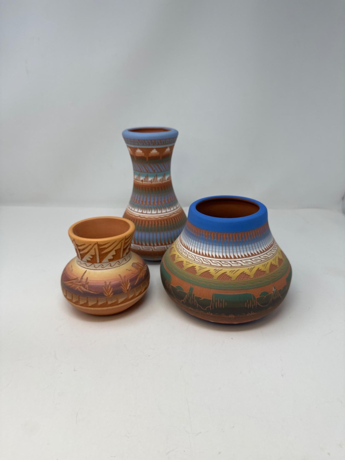 Lot # 72 - Trio of Navajo Dineh Etchware Pottery - Arlene Begay