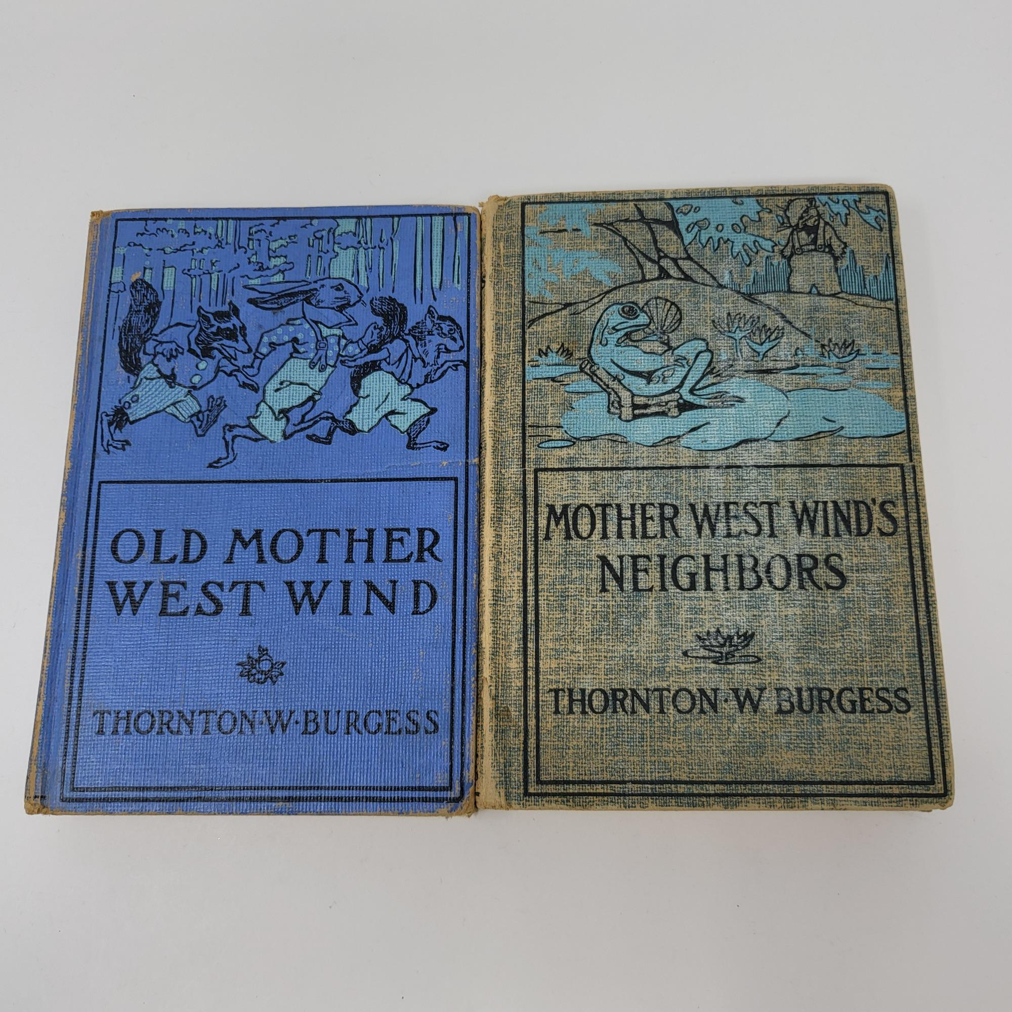 Old Mother West Wind, 1910 and Mother West Wind's Neighbors, 1942. Normal wear to the spines, some writing inside, pages are intact. [PP]
