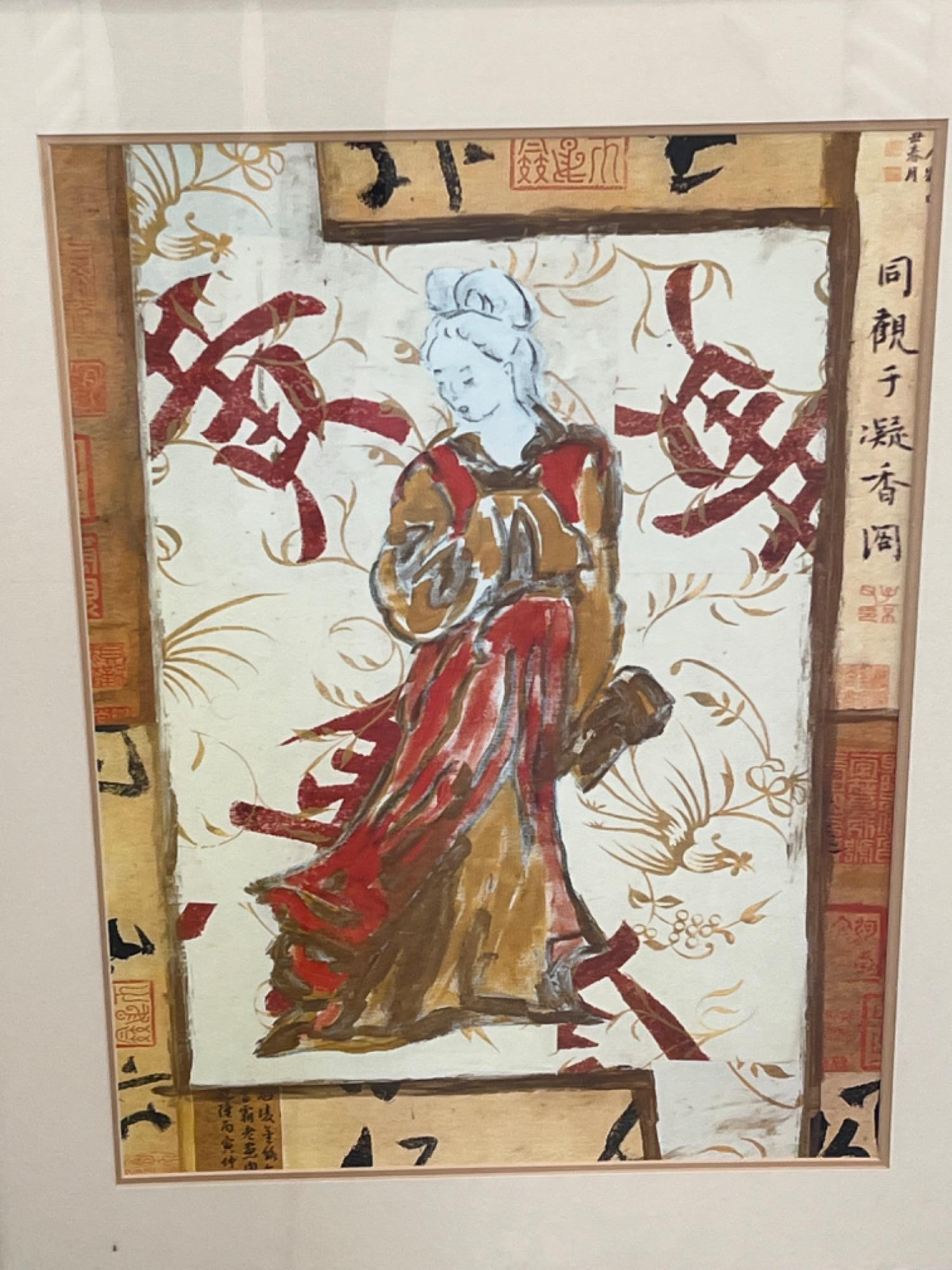 Lot # 167 - Asian Woman in Traditional Dress Framed Art